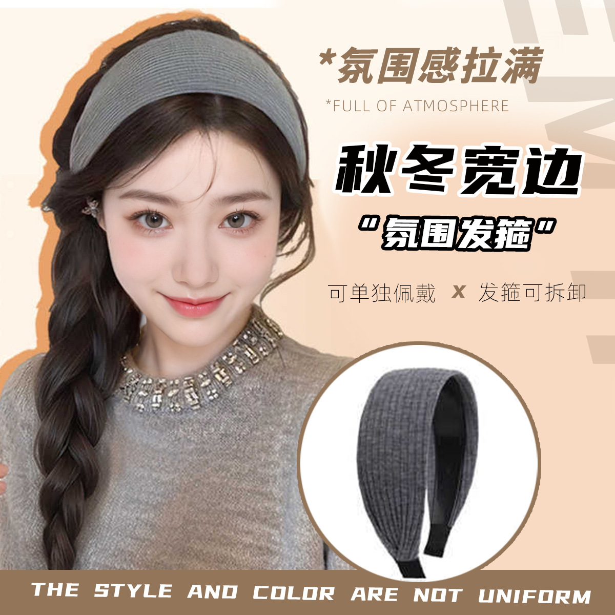 秋冬宽边针织发箍假发一体式仿真长卷发半头套水波纹高颅顶可拆卸