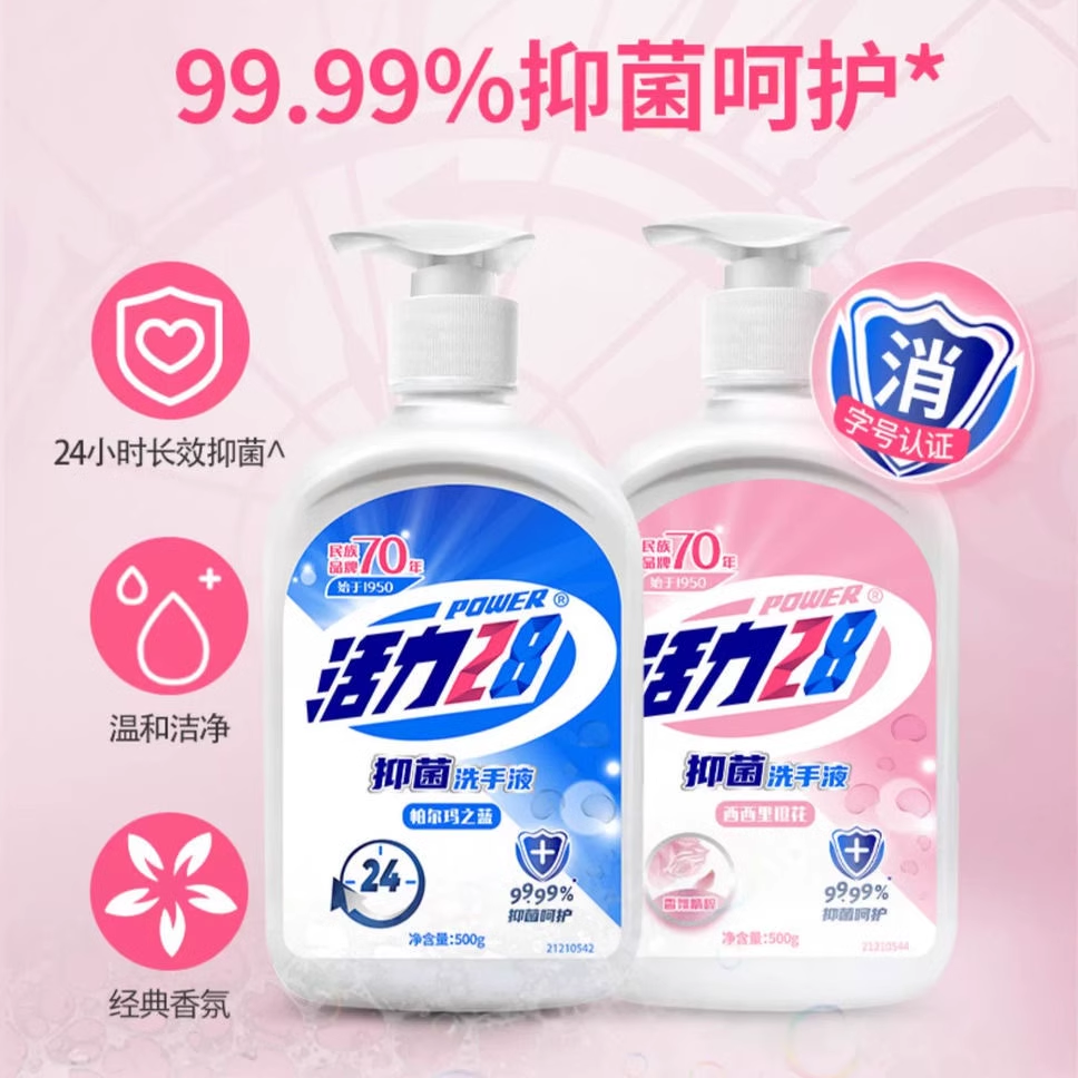 活力28抑菌洗手液家庭装抑菌呵护家用组合装500g大瓶