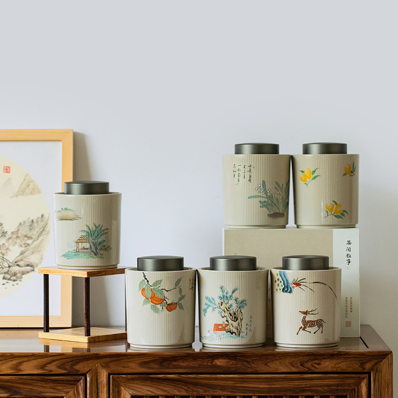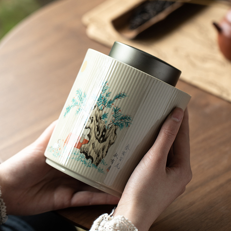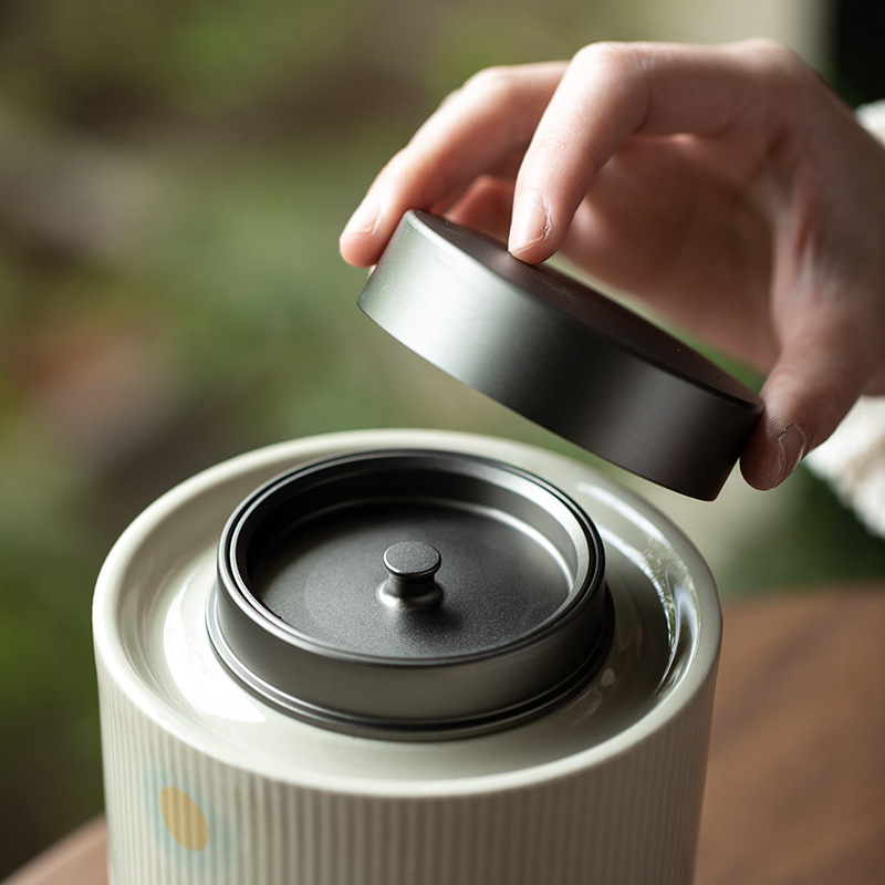 草木灰陶瓷茶叶罐普洱白茶锡盖密封罐防潮茶仓储存罐家用醒茶大罐