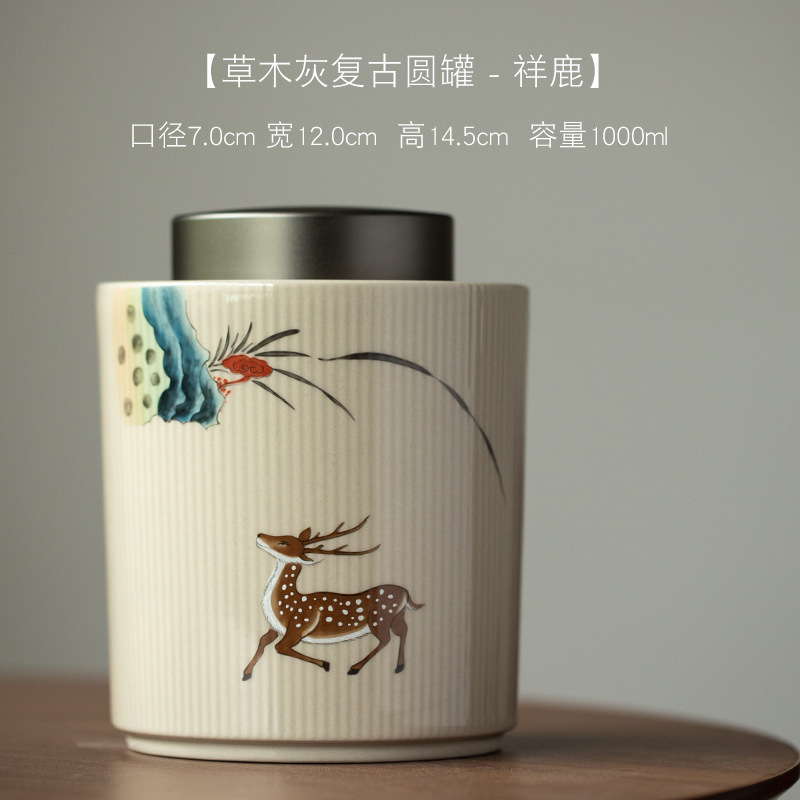 草木灰圆罐-祥鹿