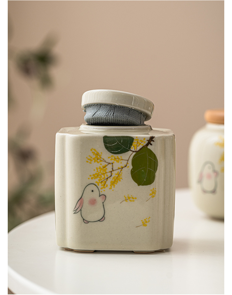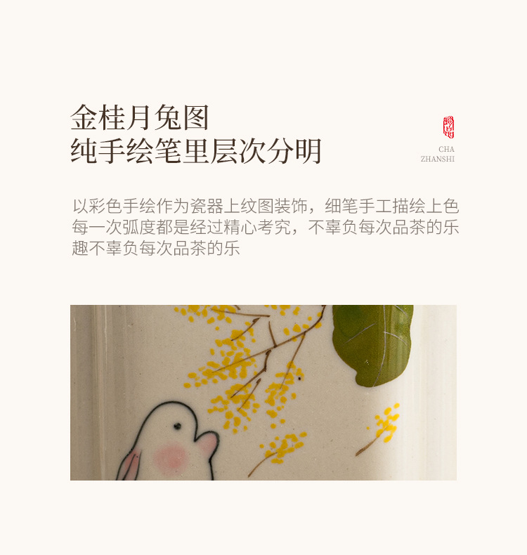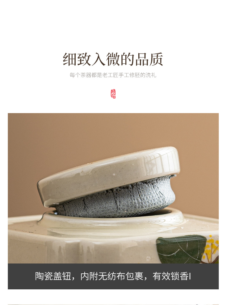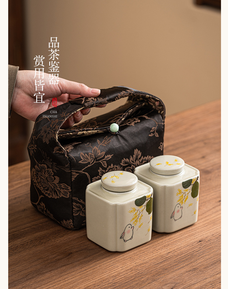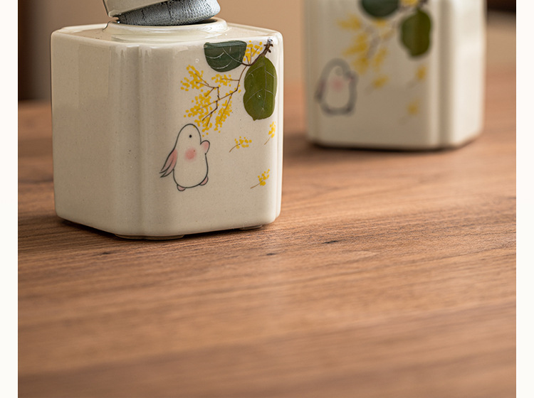 手绘金桂月兔茶叶罐密封罐小号便携陶瓷存茶罐防潮家用储物罐茶仓