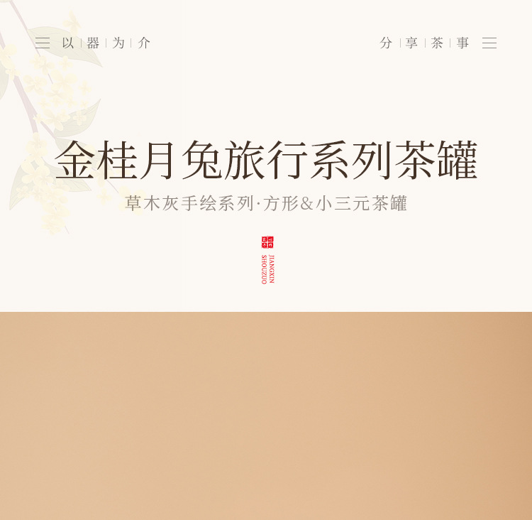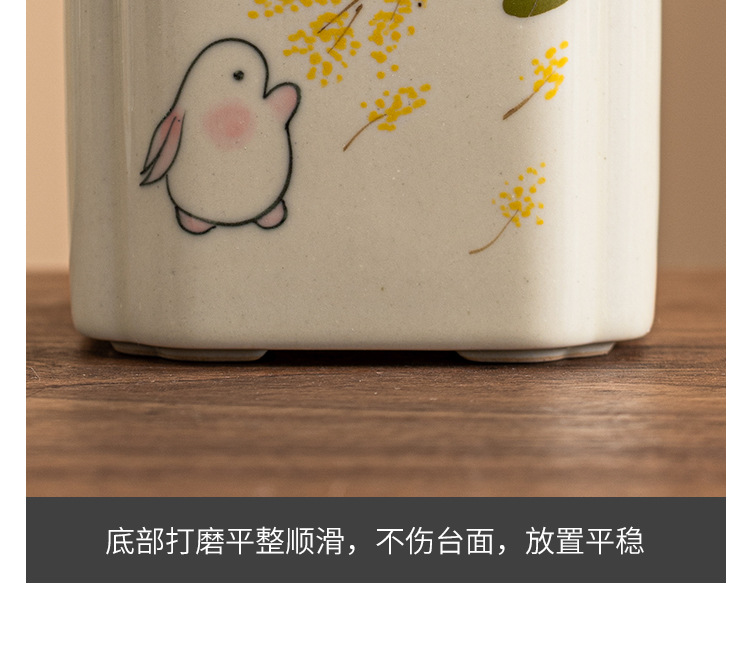 草木灰纯手绘金桂月兔_方形茶叶罐