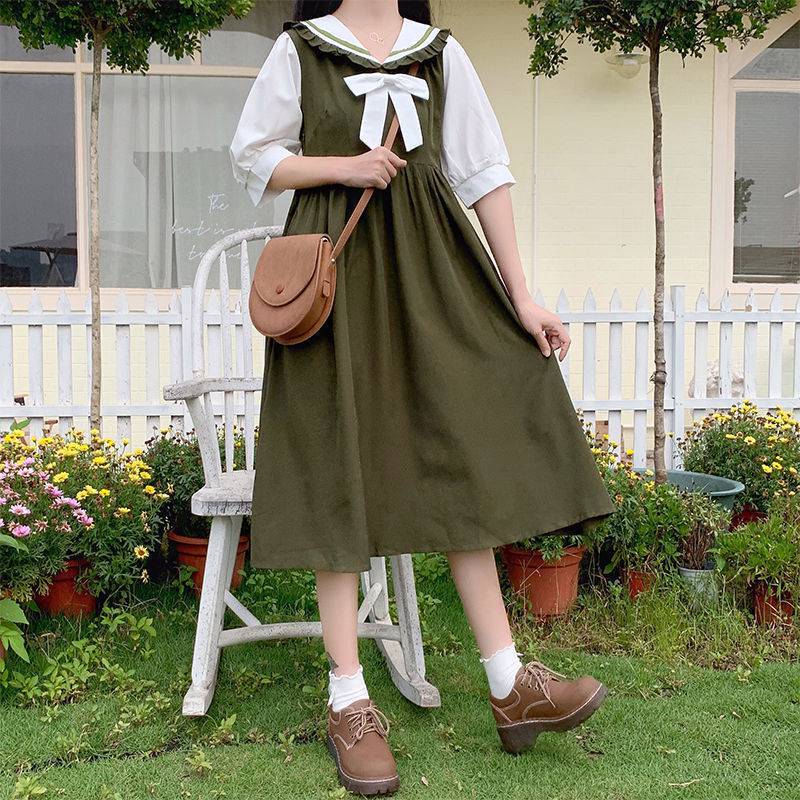 海军领短袖连衣裙少女夏装新款初中高中学生学院风日系森系裙子