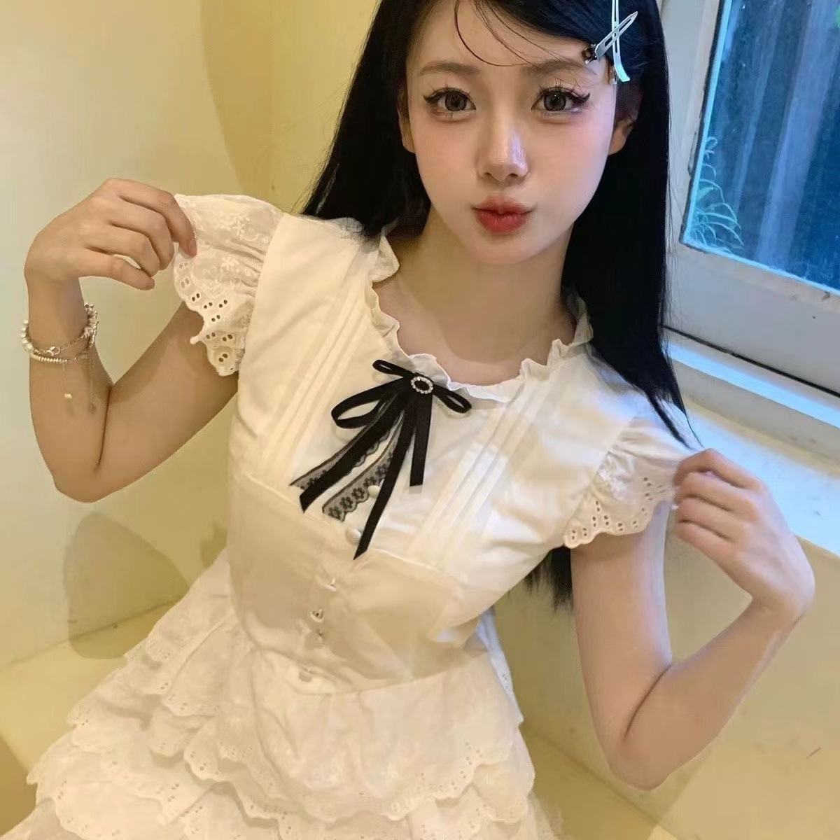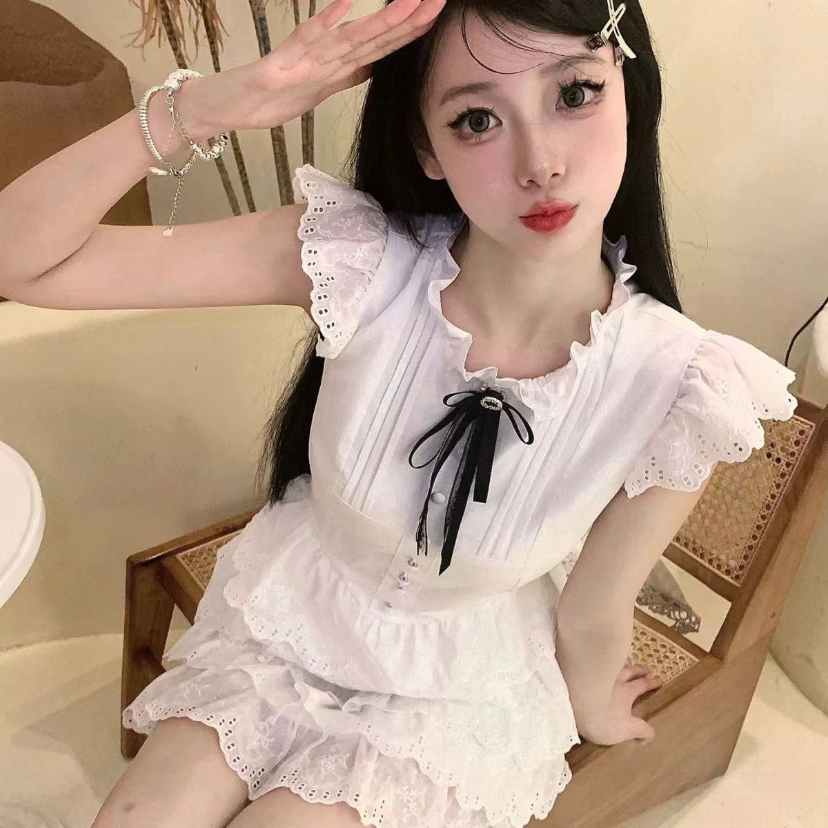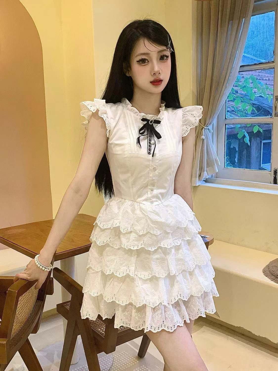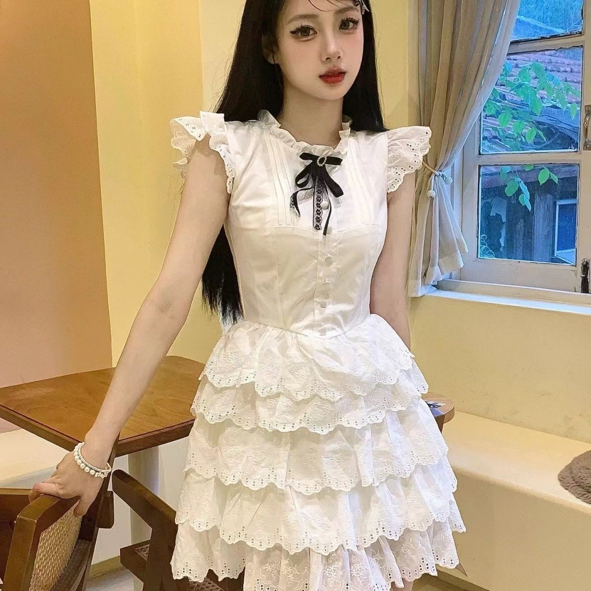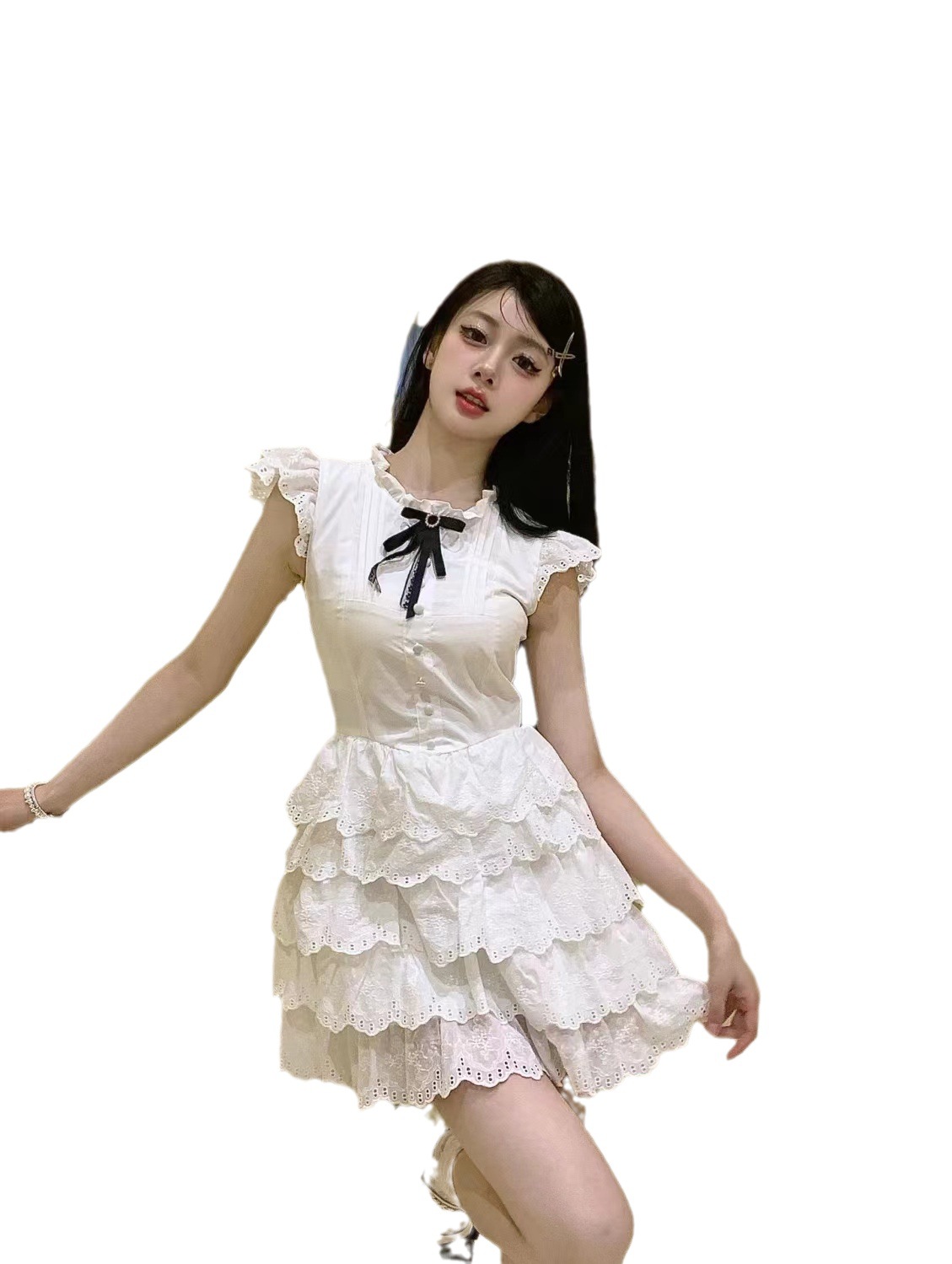 夏季新款初恋感小白裙女韩系学院风小飞袖甜美蛋糕裙连衣裙