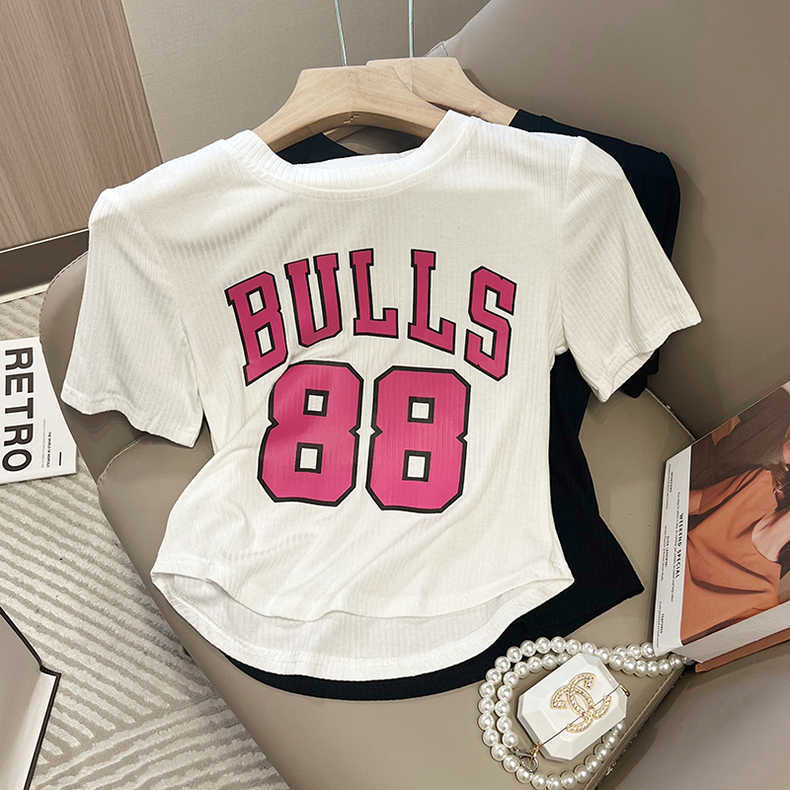 设计感小众白色T恤女ins潮年夏新款字母修身显瘦短款纯欲上衣