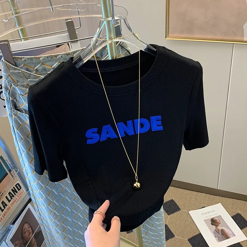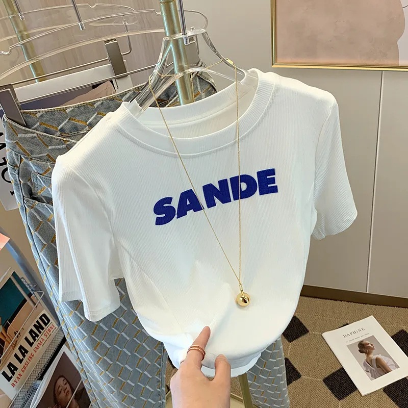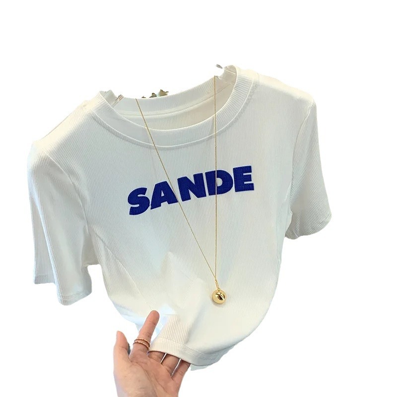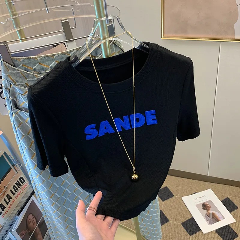 纯欲短款上衣设计感小众夏季修身显瘦字母白色短袖T恤女ins潮
