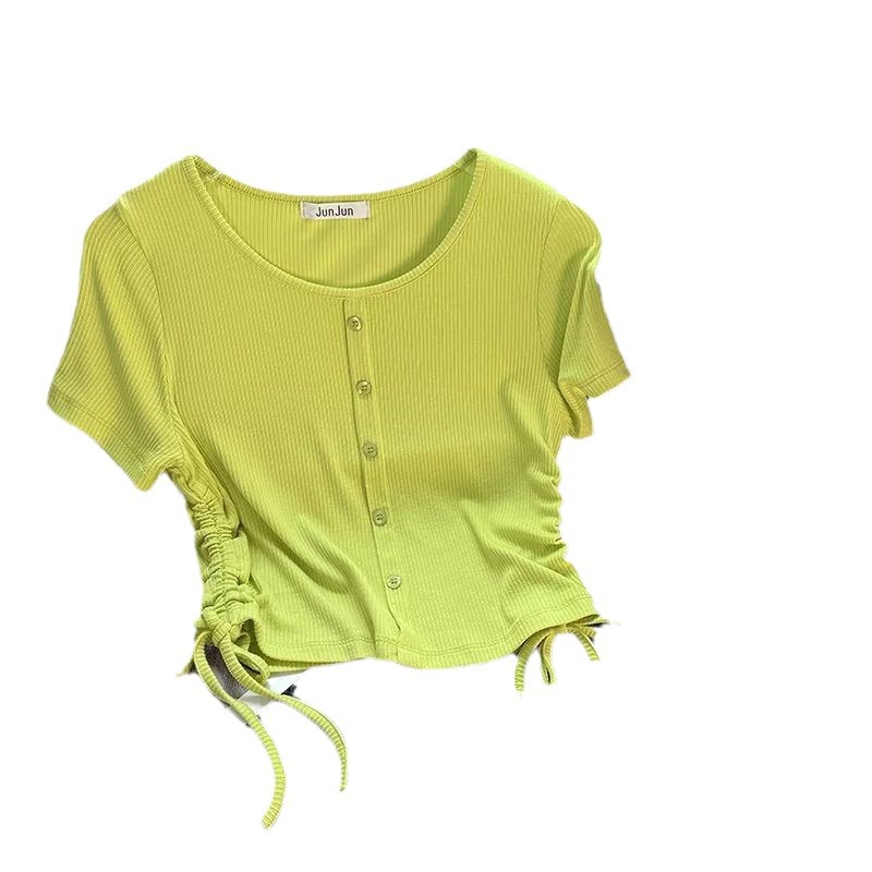 修身显瘦打底短款辣妹上衣潮螺纹侧边抽绳短袖t恤女夏季新款弹力