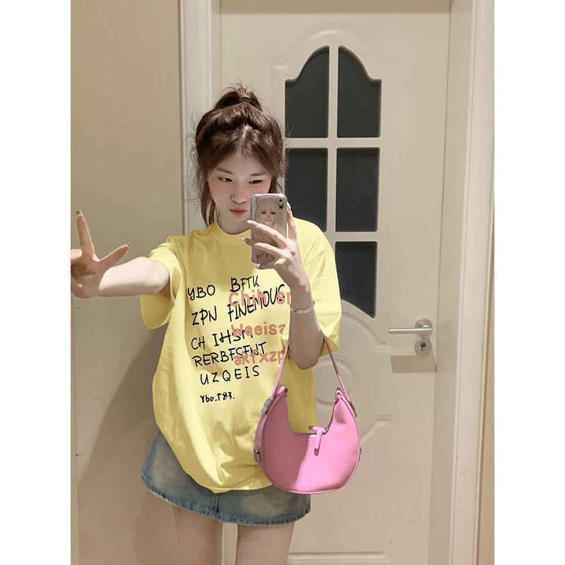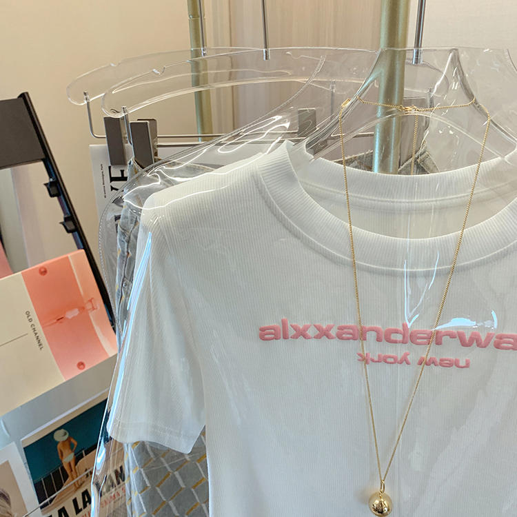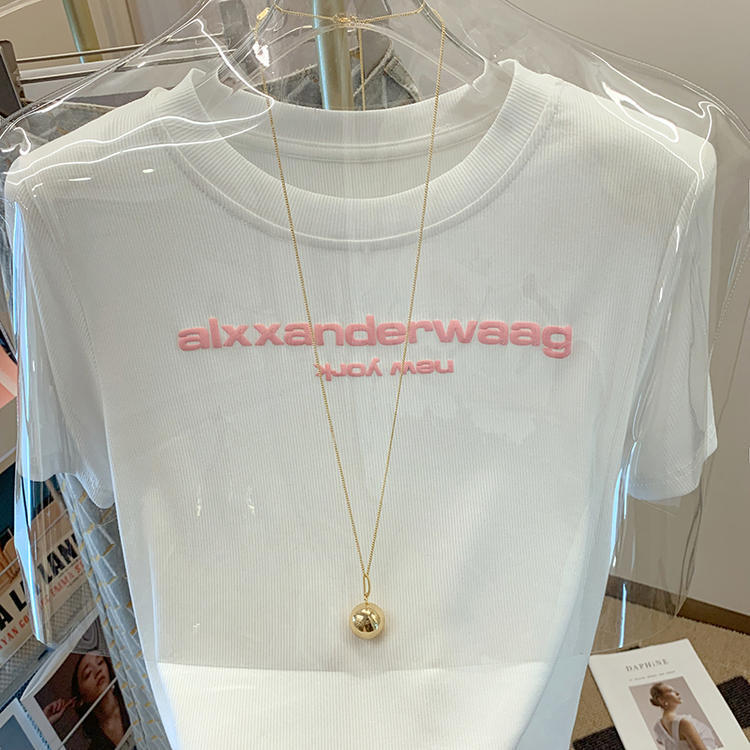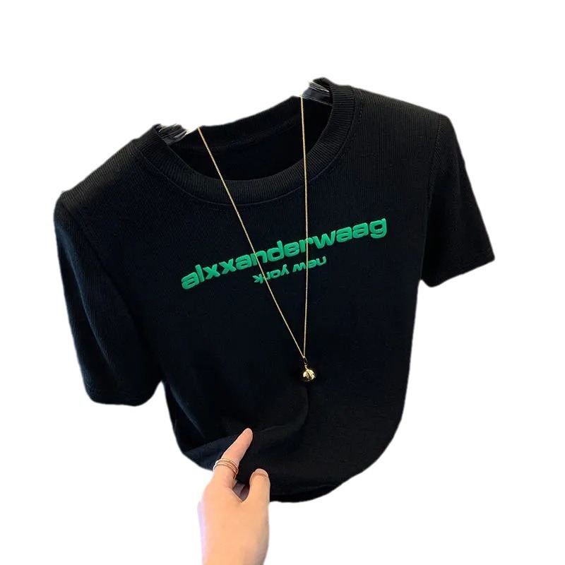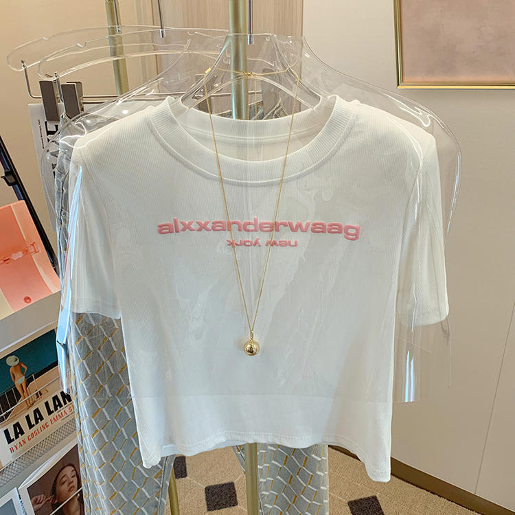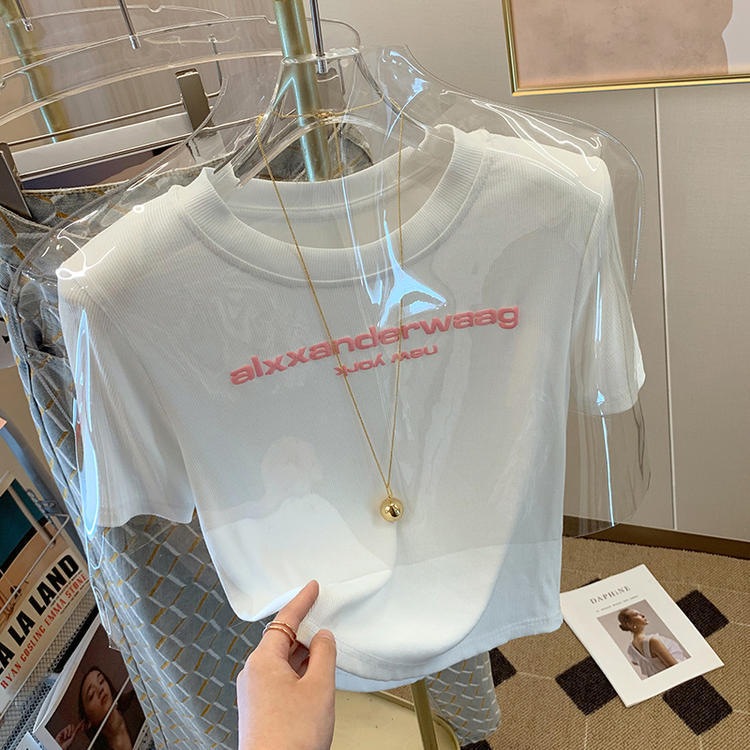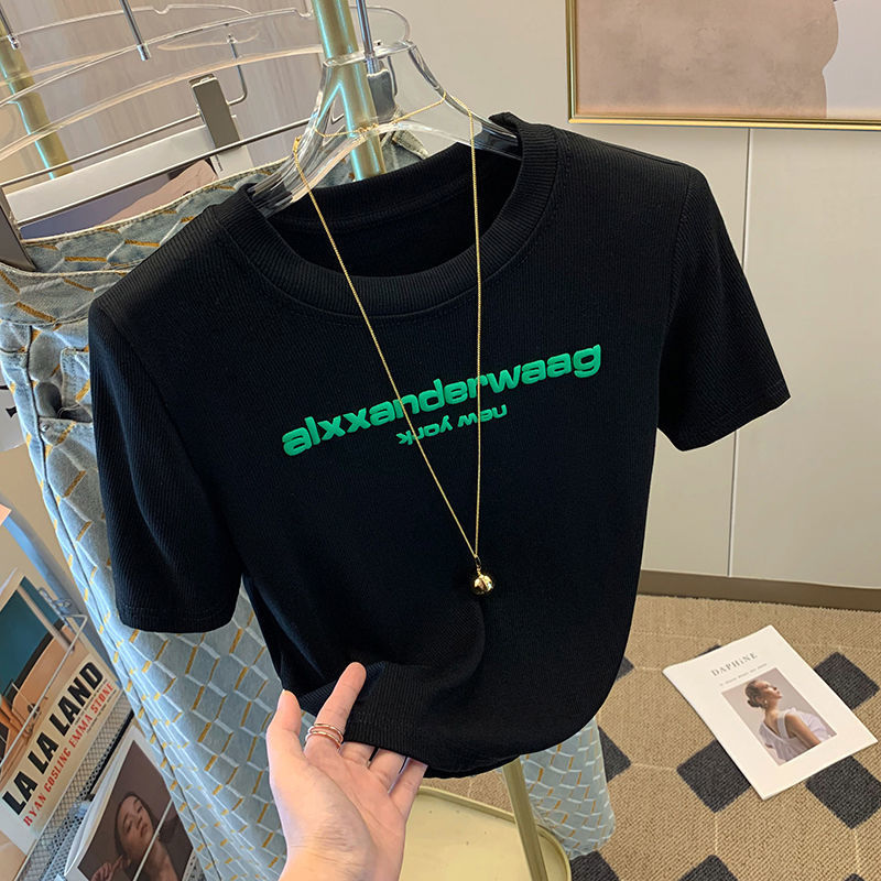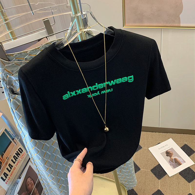 纯色字母短袖T恤女夏季新款时尚气质修身减龄百搭小众别致上
