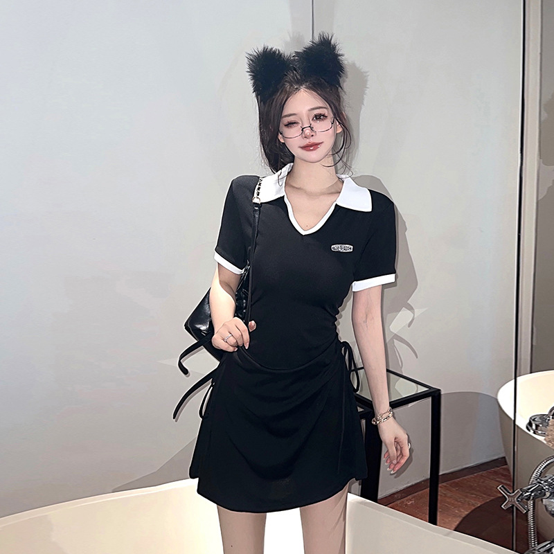 大码胖MM法式学院风polo领包臀连衣裙女夏季年新款显瘦短裙潮