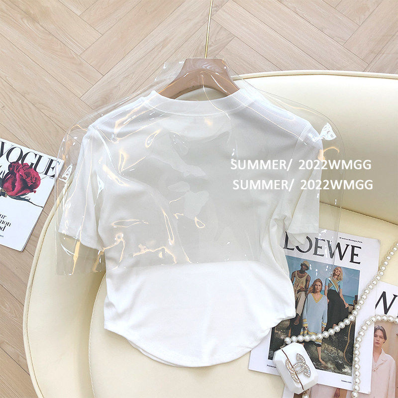 白色短袖t恤女夏季韩版设计感小众宽松显瘦百搭纯色学生贴标上衣