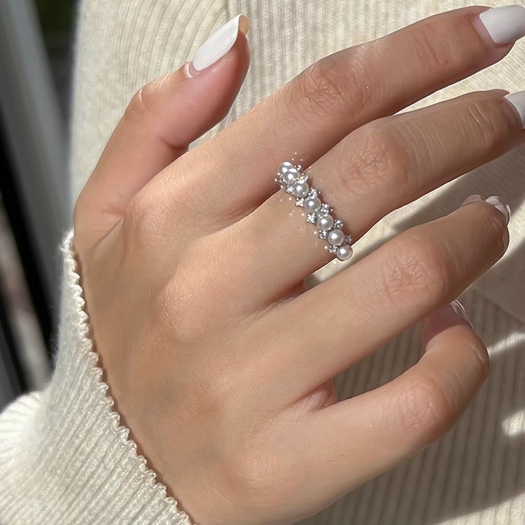方糖家纤细版/满天星奥地利施家珍珠纯银戒指轻奢气质精致指环女