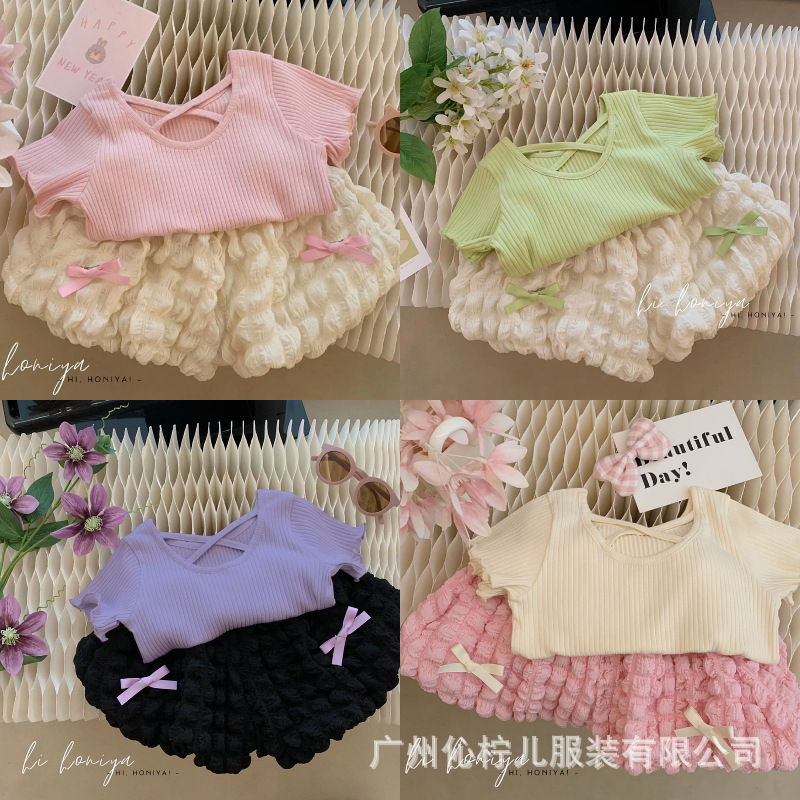 女童夏装套装2025新款女宝宝韩版时髦短袖小女孩花苞裤夏季两件套