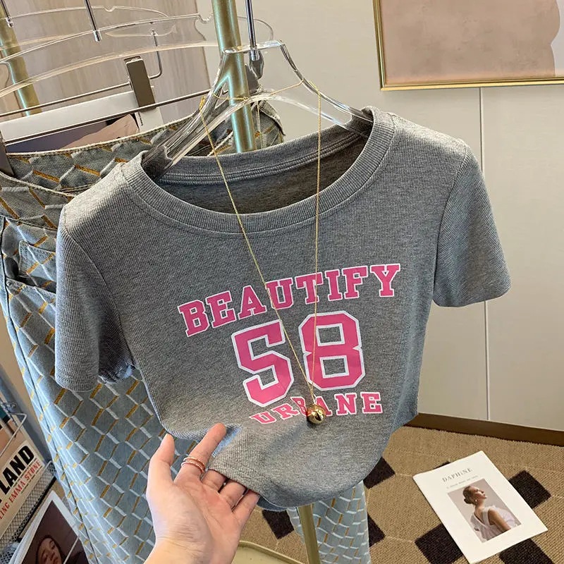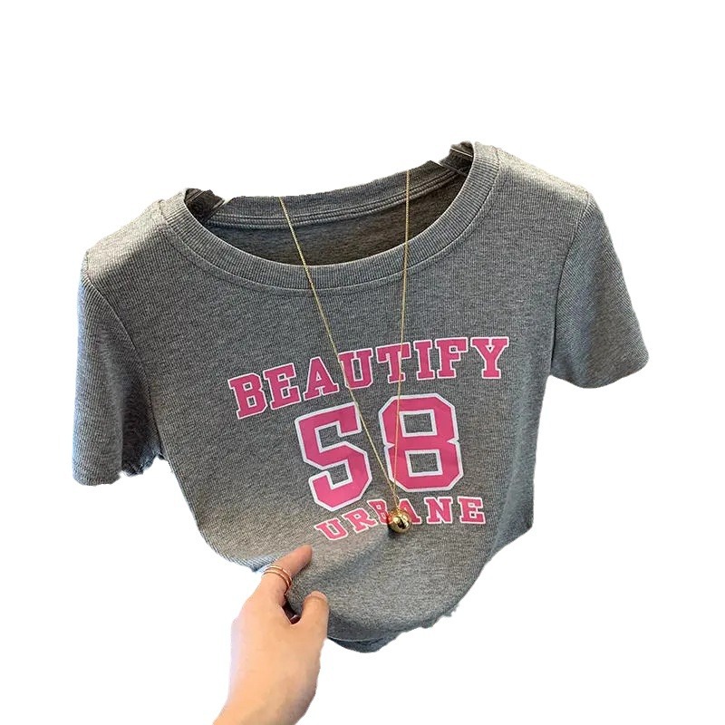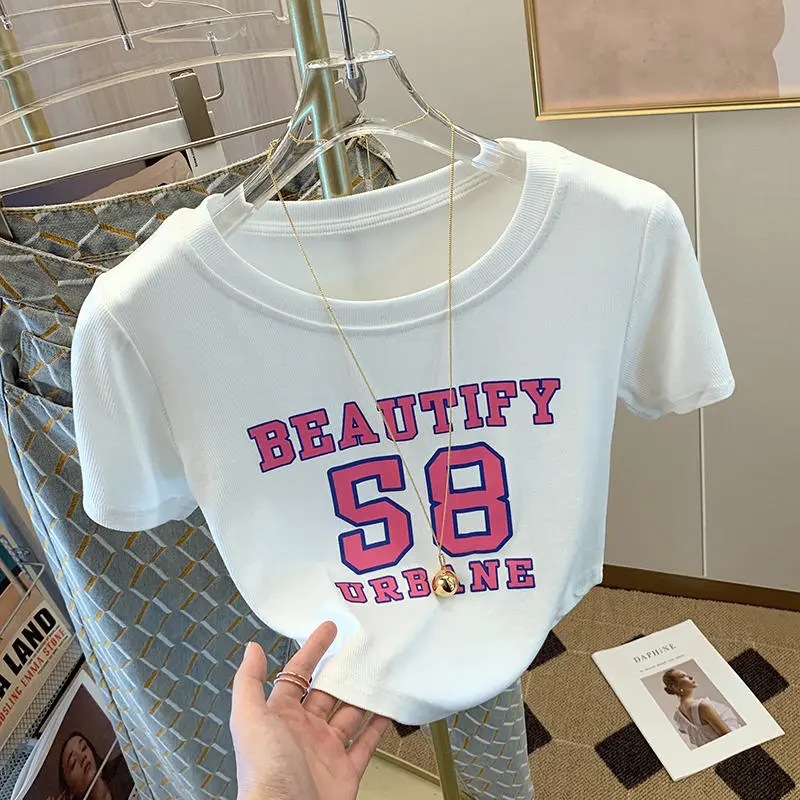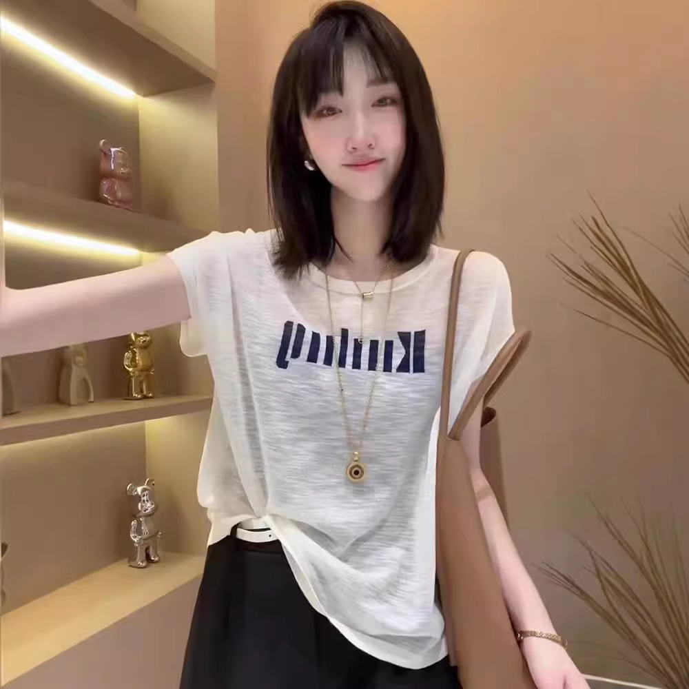 爆款时尚显白显瘦宽松夏季针织衫新款纯棉字母短袖上衣小衫