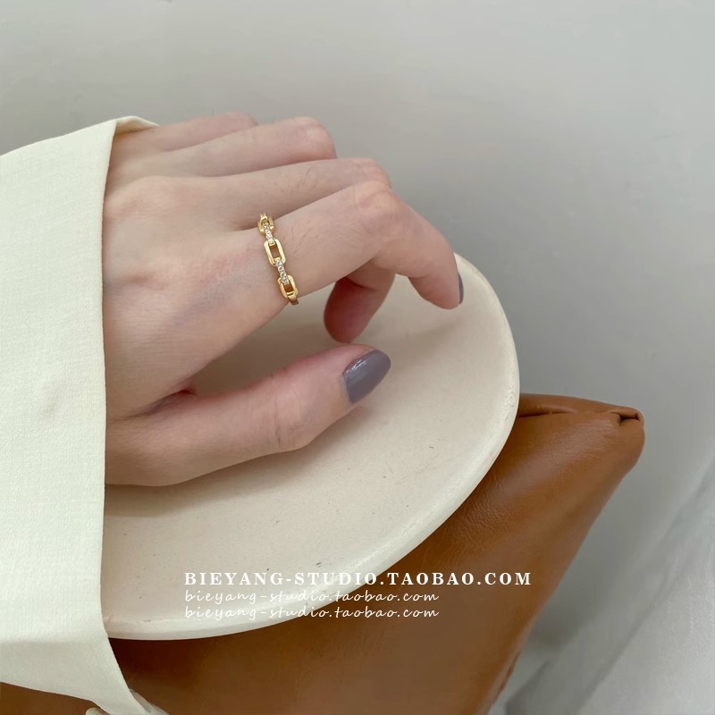 别样E305韩风ins精致镶钻S925银镀金镂空气质百搭轻奢时尚开口戒