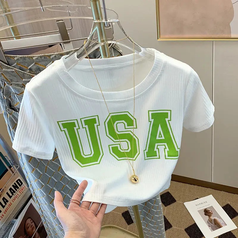 欧货螺纹白色短袖t恤女夏季新款修身洋气独特上衣半袖体恤潮