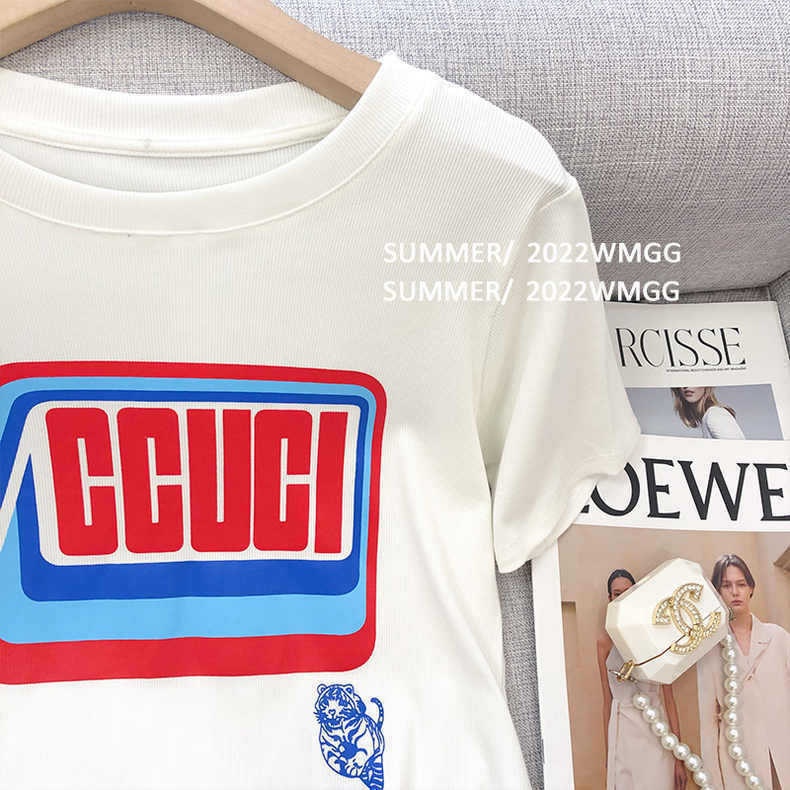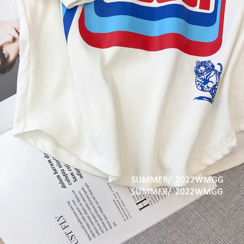 白色短袖T恤女夏季薄款设计感小众法式宽松气质字母印花短款上衣