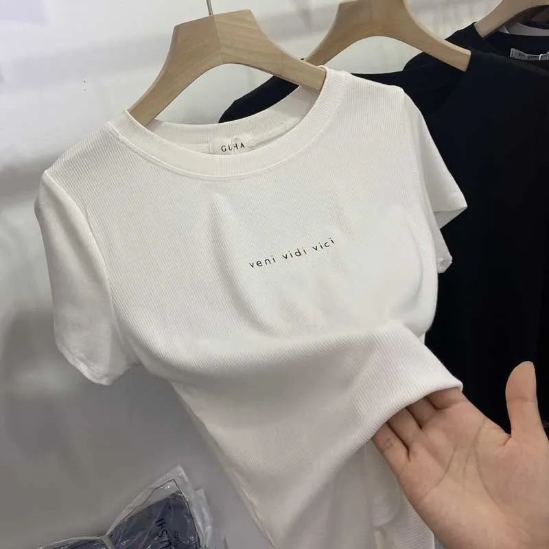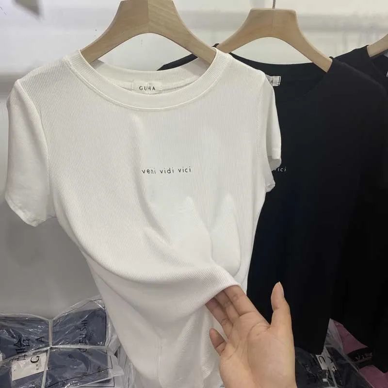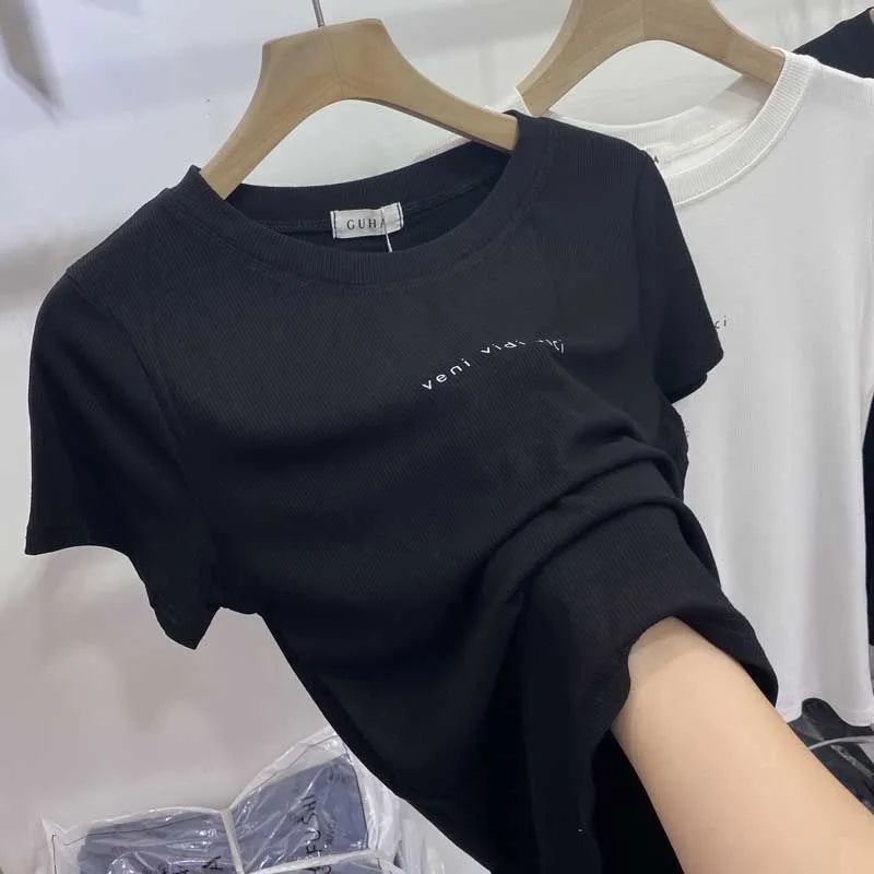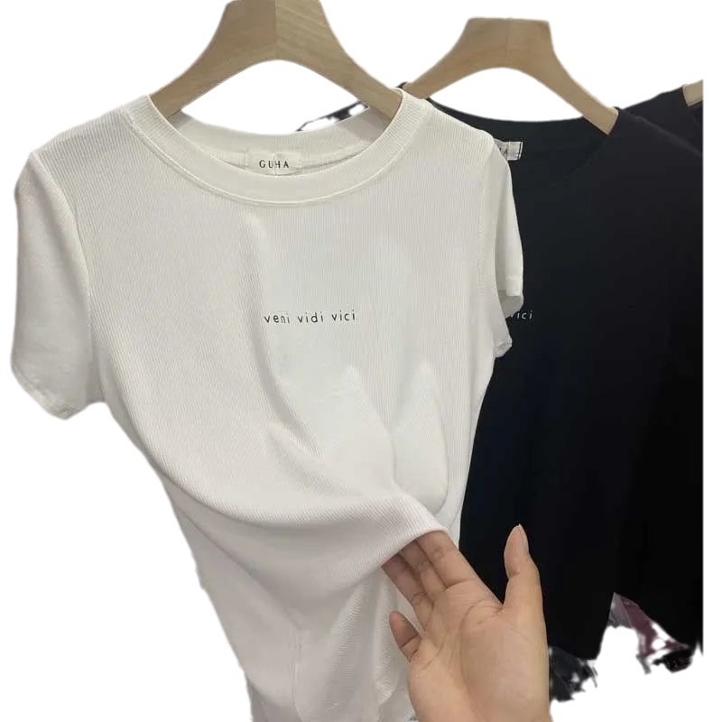 欧货新款春夏螺纹百搭短袖t恤女体恤打底衫字母半袖上衣ins潮