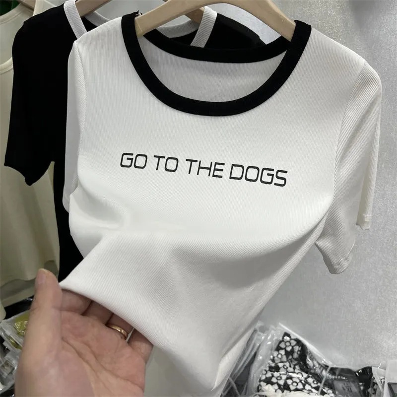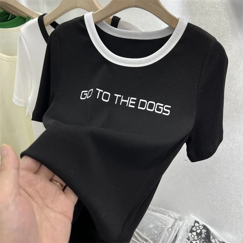 欧货字母印花圆领短袖T恤女夏装新款简约百搭体恤小衫上衣潮