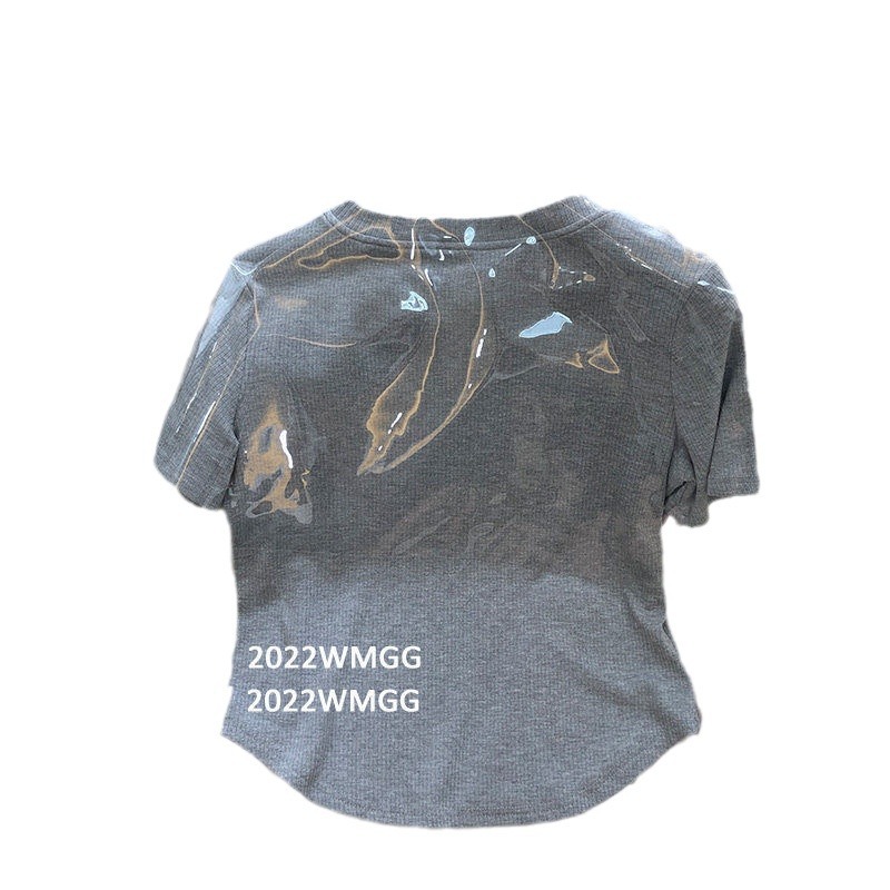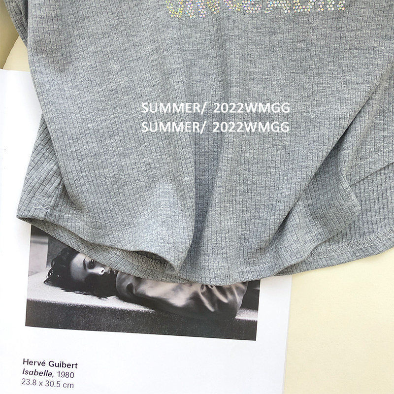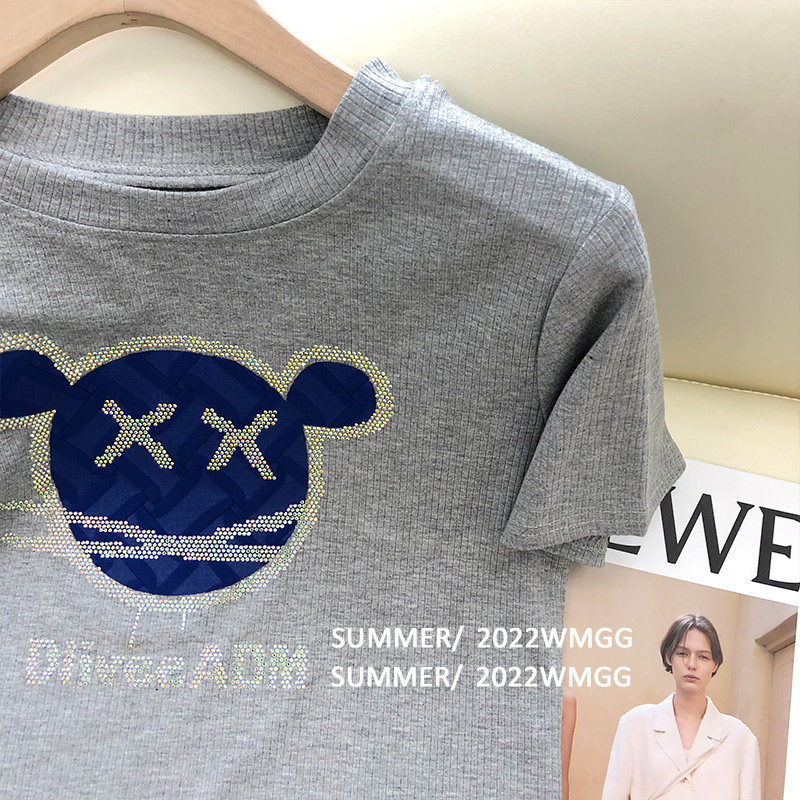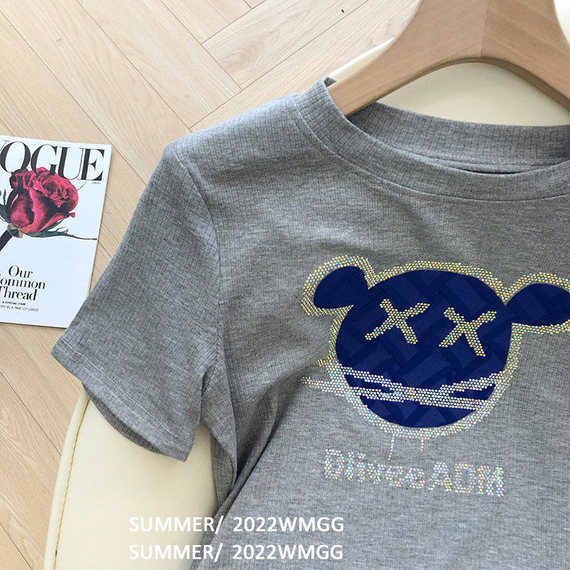 烫钻灰色短袖T恤女夏季韩版设计感小众修身显瘦辣妹学生上衣ins潮