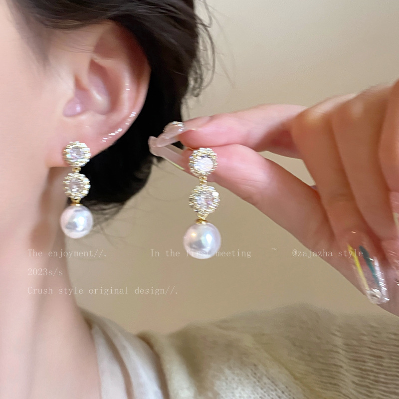 微镶锆石珍珠耳环独特高级感小众气质耳饰女轻奢精致小香风耳坠潮