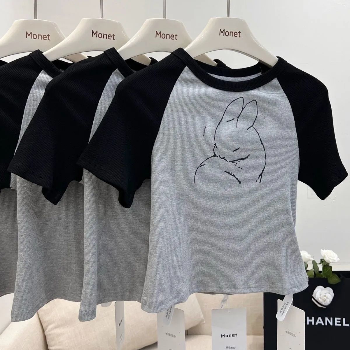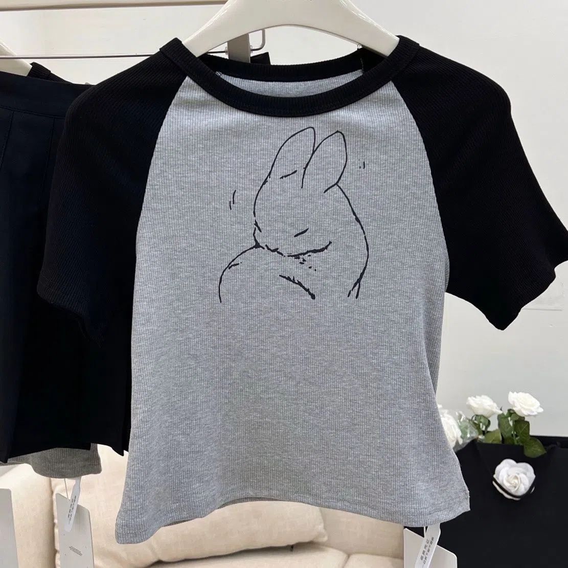 薄款拼接撞色短袖T恤女年新款夏季修身显瘦百搭短款上衣ins潮