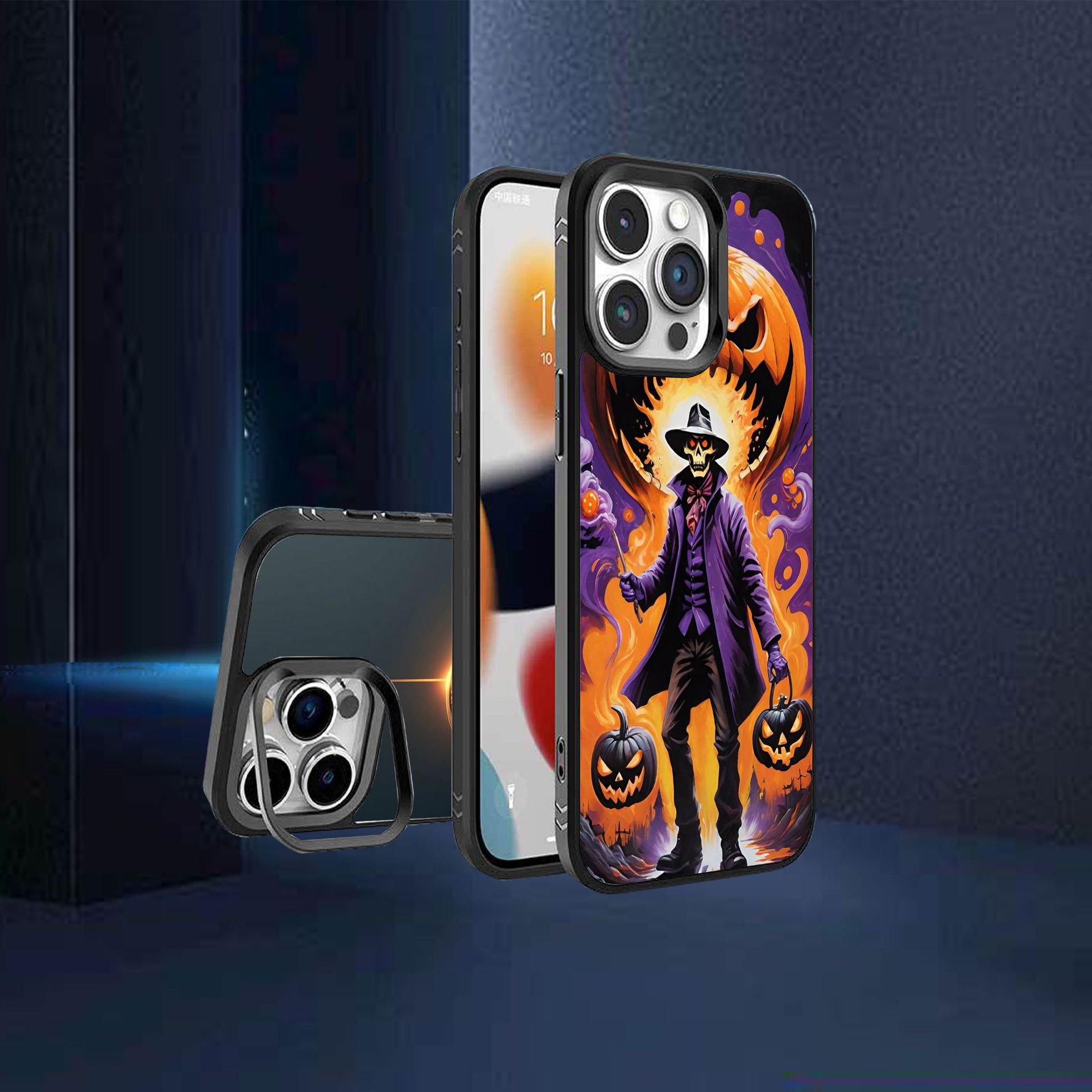 适用苹果16系列手机壳万圣节骷髅头南瓜灯幽灵磁吸支架手机保护套
