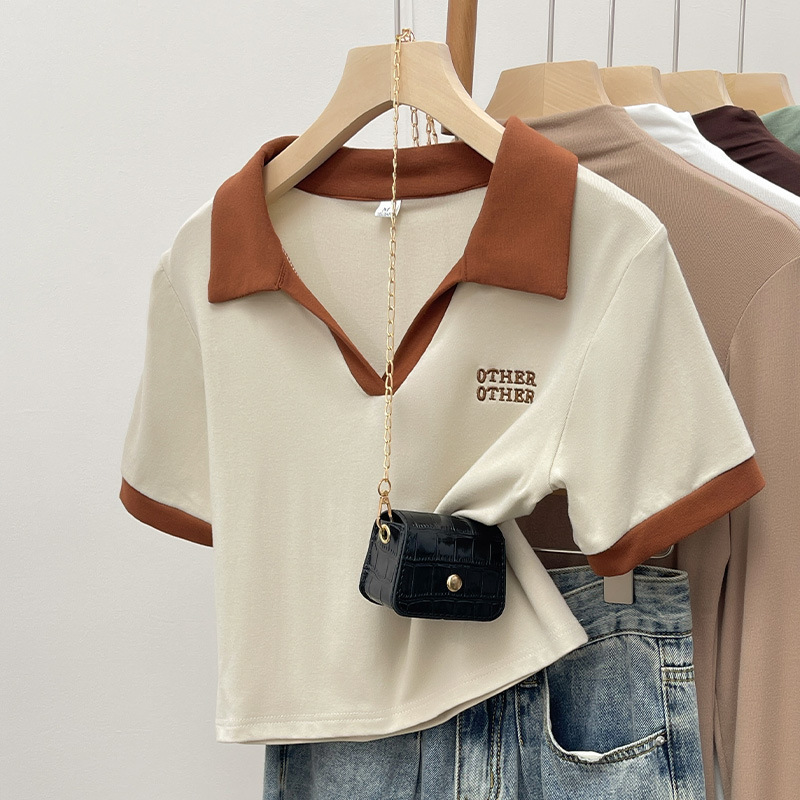polo衫短袖t恤女新款正肩夏季高腰短款显瘦显高甜辣小V领上衣