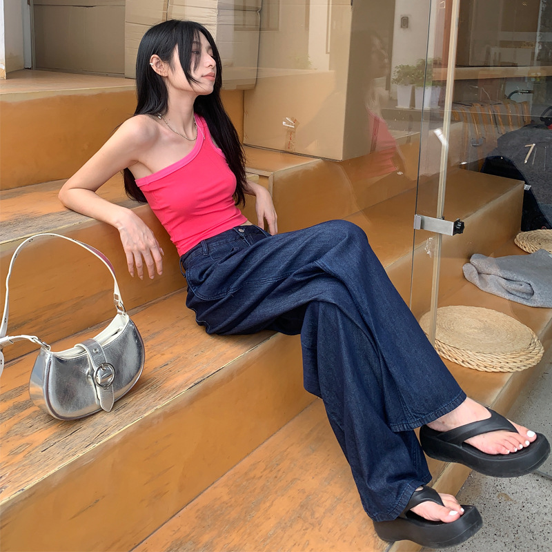 铭海高腰深色牛仔阔腿裤女宽松显瘦阔腿裤拖地裤长裤子