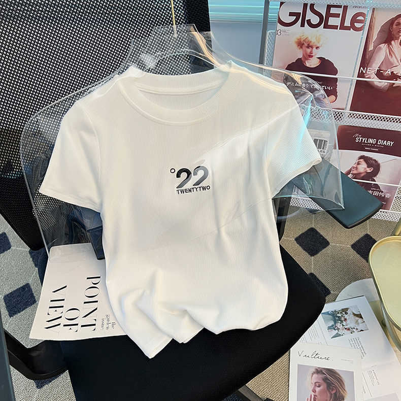 美式紧身辣妹字母印花短袖T恤女夏季爆款收腰显瘦小个子别致上衣