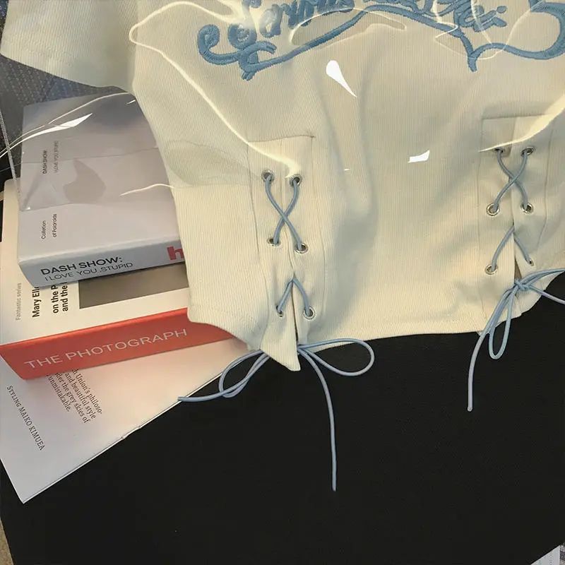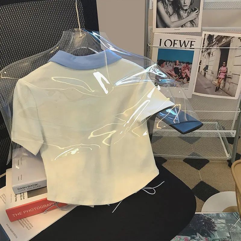 正肩短袖t恤女夏季新款复古纯欲风v领下摆弧形ins辣妹短款上衣潮