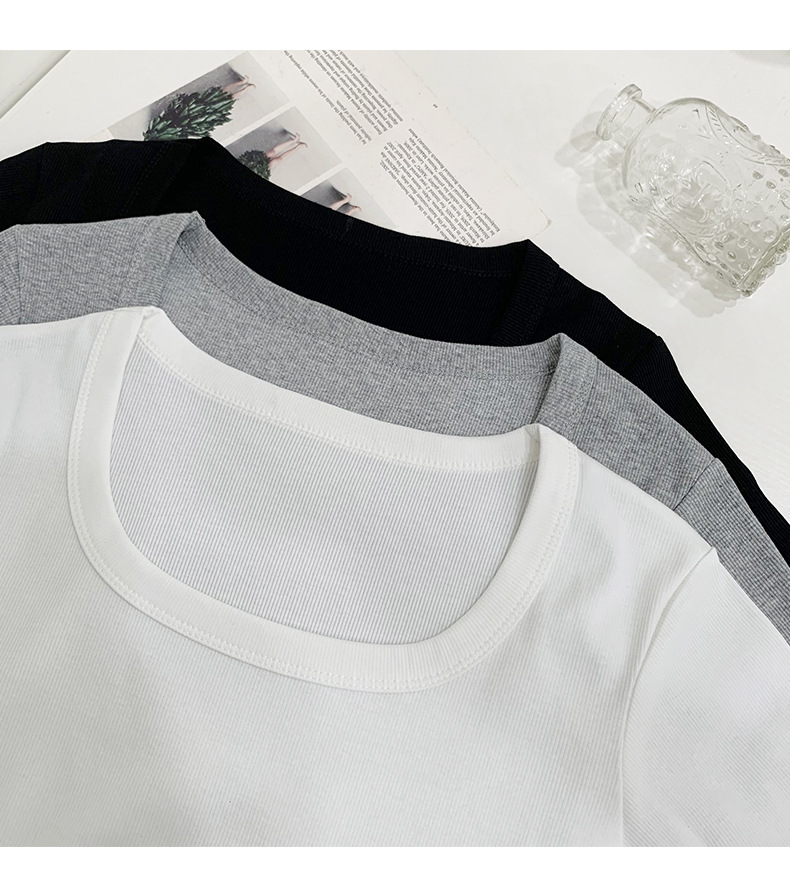 夏季方领辣妹短袖显瘦t恤女大码正肩别致设计感不规则短款上衣ins