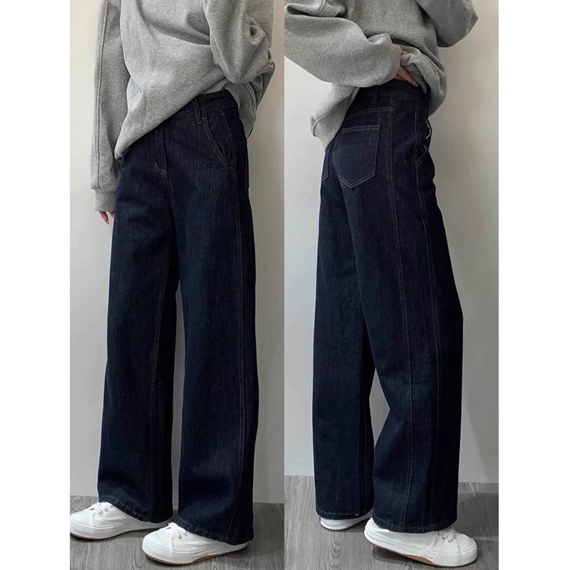 深蓝色牛仔裤女2025春季新款高腰显瘦直筒裤梨型身材裤子粗腿宽胯