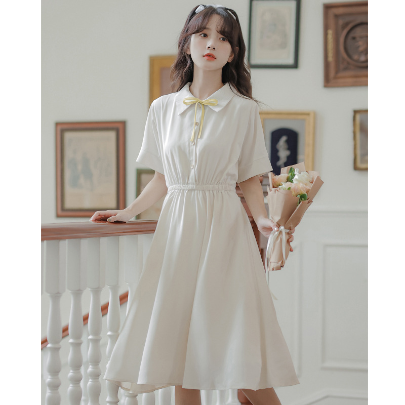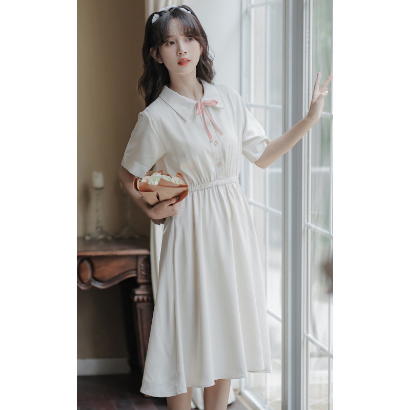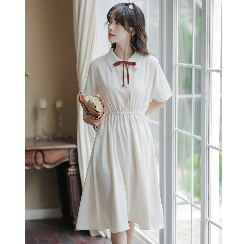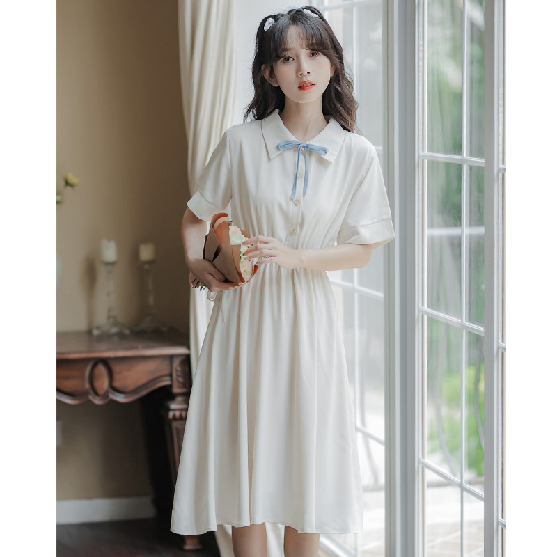 实拍温柔学院风蝴蝶结翻领连衣裙学生中长裙夏季新款ME1113