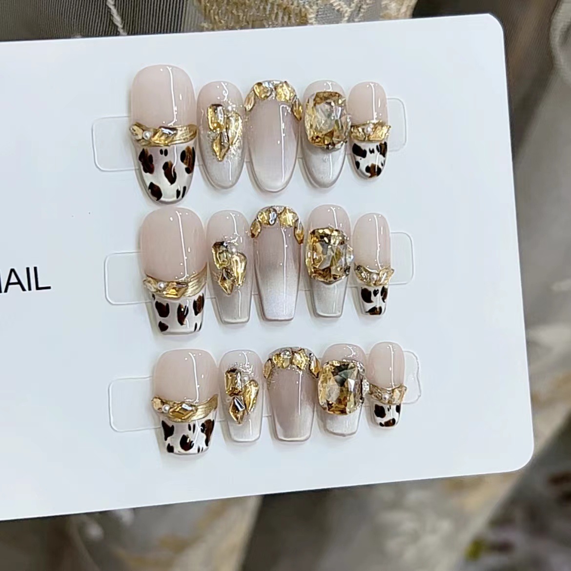 奈姿 纯手工光疗穿戴美甲猫眼小野猫批发成品重复使用贴片可拆