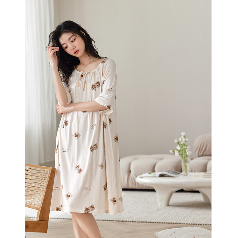 莫代尔睡裙女夏款半袖中长款女士睡衣甜美时尚可外穿宽松裙子夏季