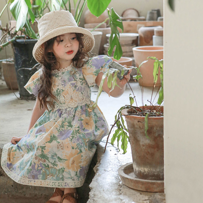 夏款草莓珊韩版法系甜美女童女孩美腻花朵泡泡袖连衣裙