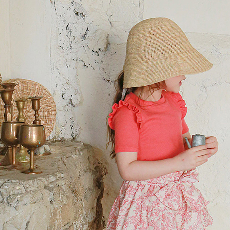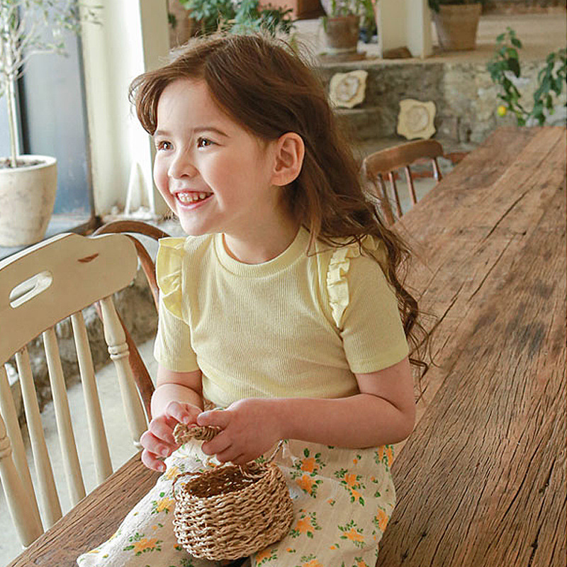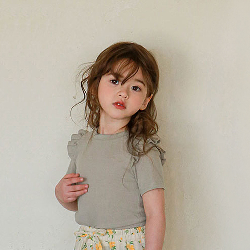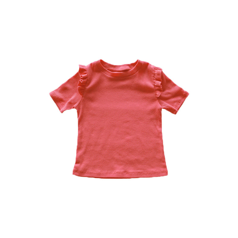 夏款草莓珊女孩女童洋气圆领菲边短袖弹力百搭短袖T恤