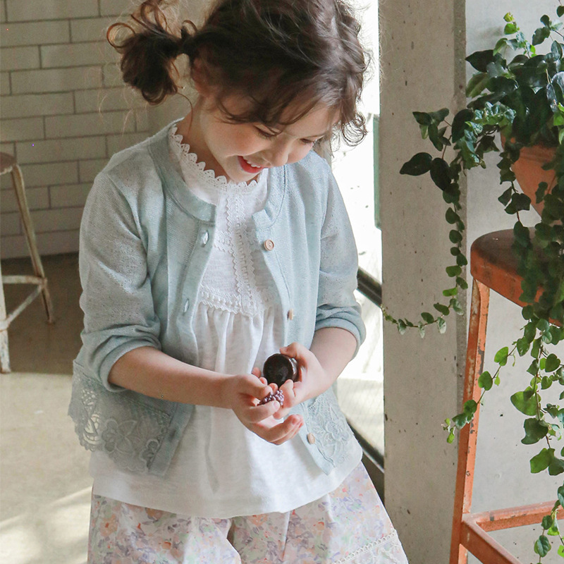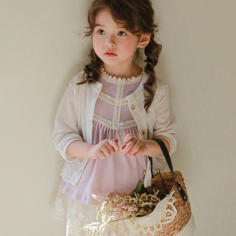 夏款草莓珊韩国儿童女孩可爱防晒衫淑女蕾丝边开衫空调衫