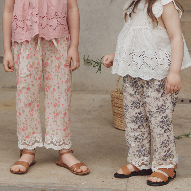 女童防蚊裤夏草莓珊韩国童装女孩小碎花系带休闲裤防蚊裤