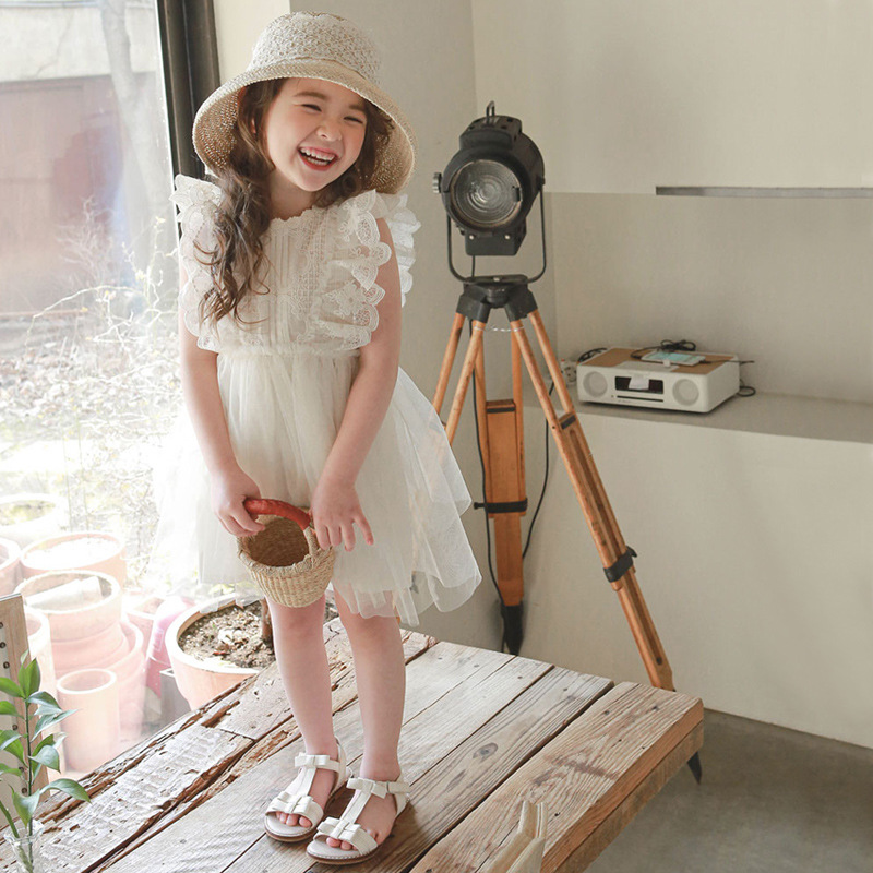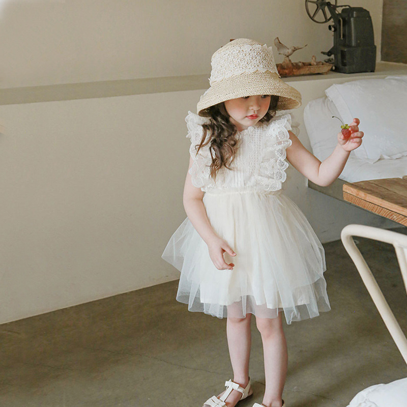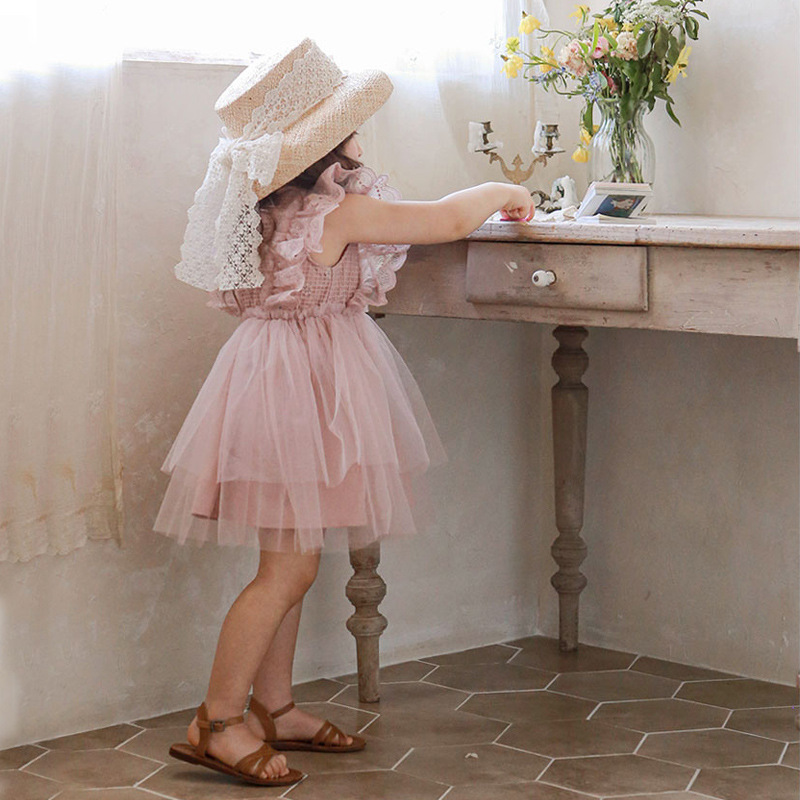 夏款草莓珊儿童女孩蕾丝网纱宫廷无袖连衣裙女童公主裙