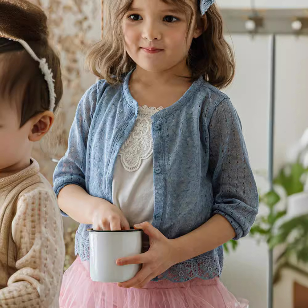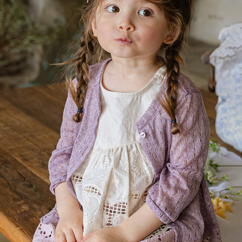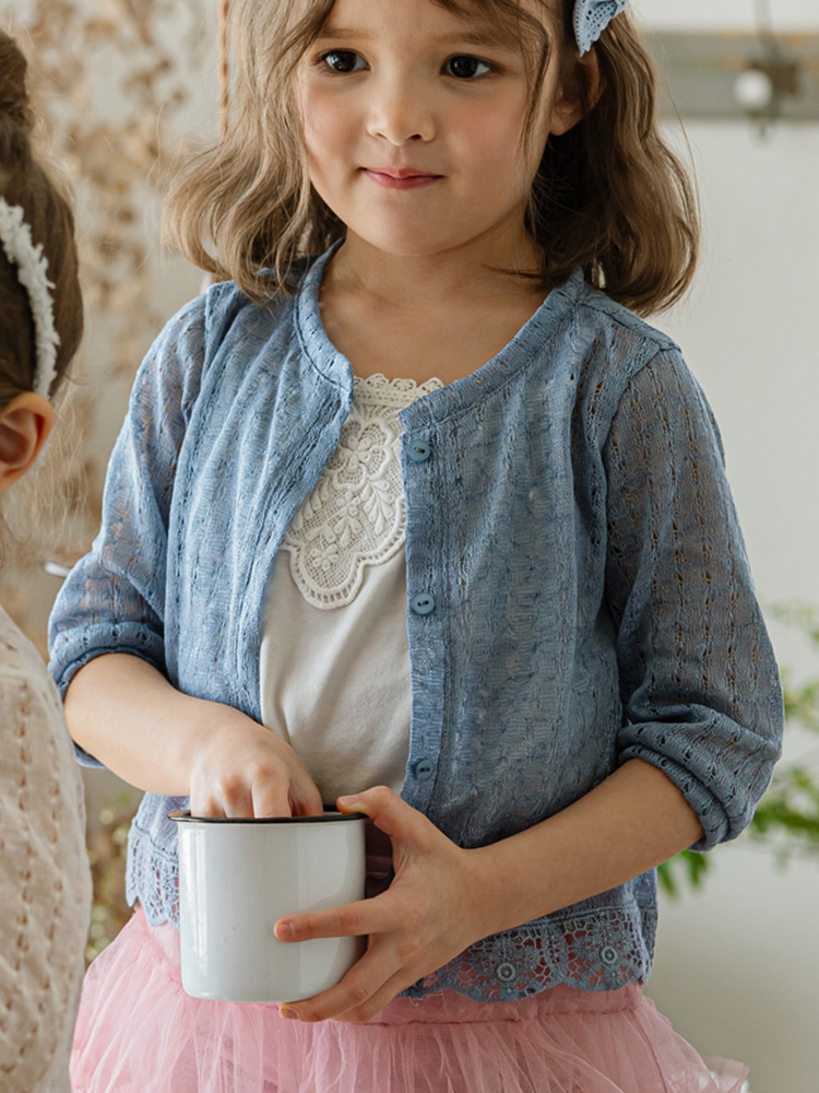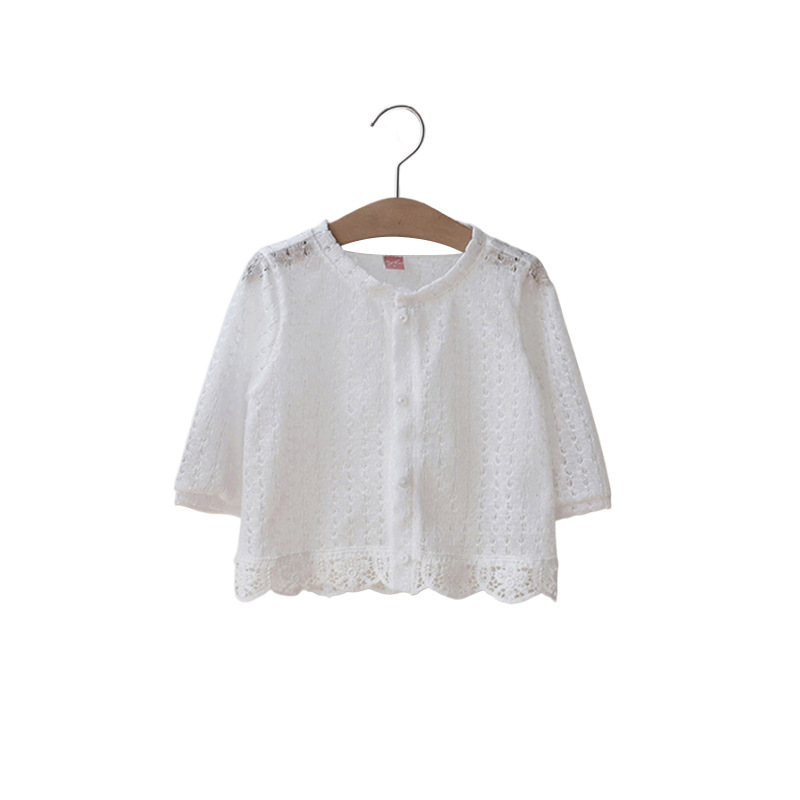 夏款草莓珊韩国女童女孩儿童花边3色甜美镂空空调衫防晒衫
