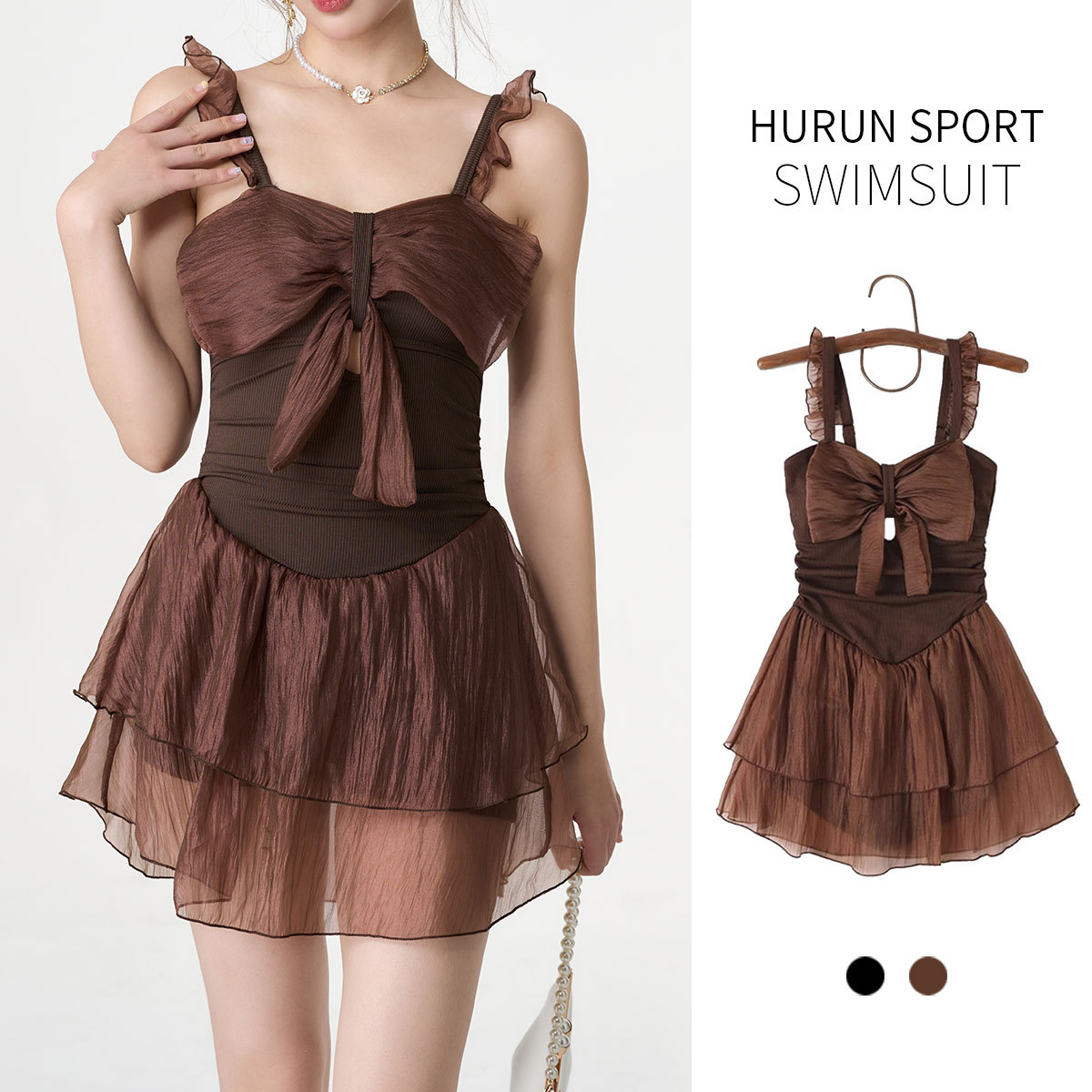 泳衣女款夏连体性感网纱辣妹泳装保守平角裙式遮肉显瘦度假
