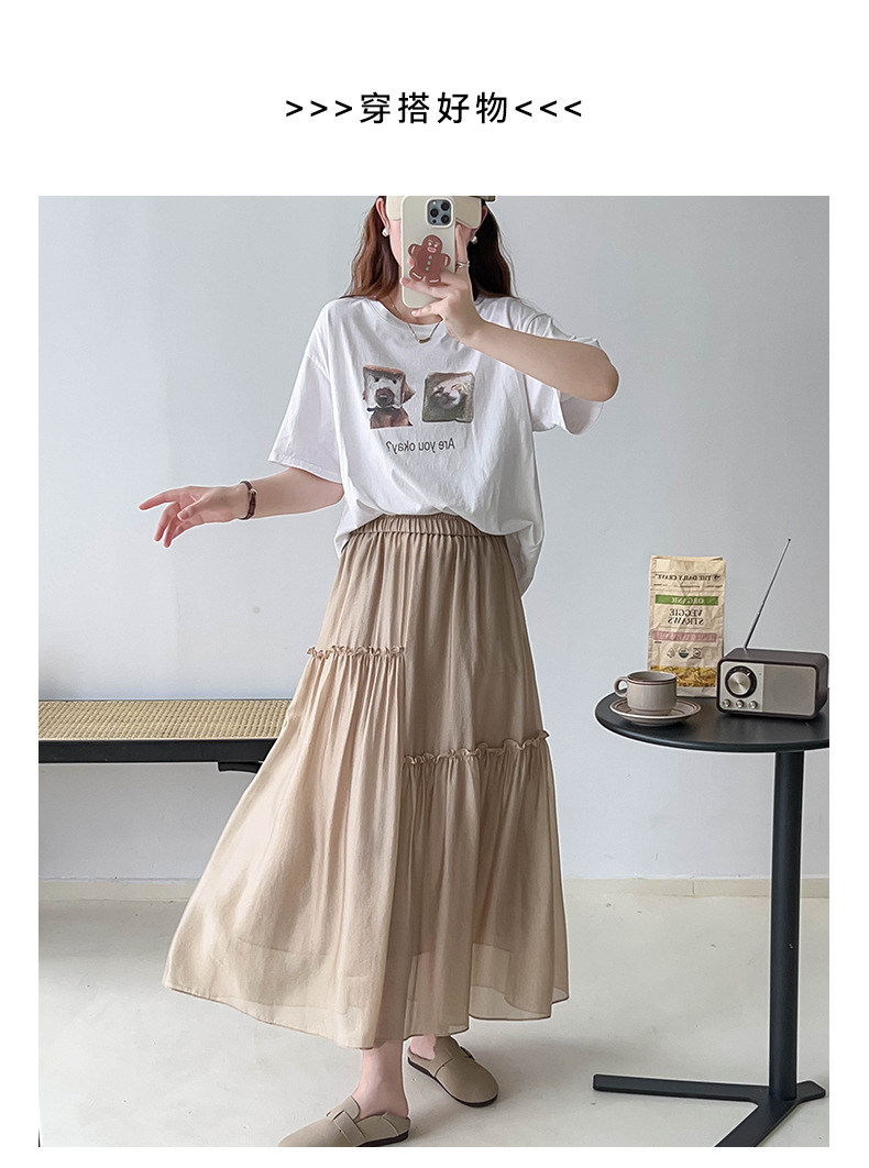 夏日多巴胺a字半身裙女松紧高腰气质甜美文艺显瘦裙子清凉感穿搭
