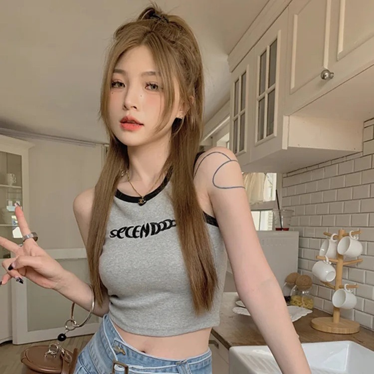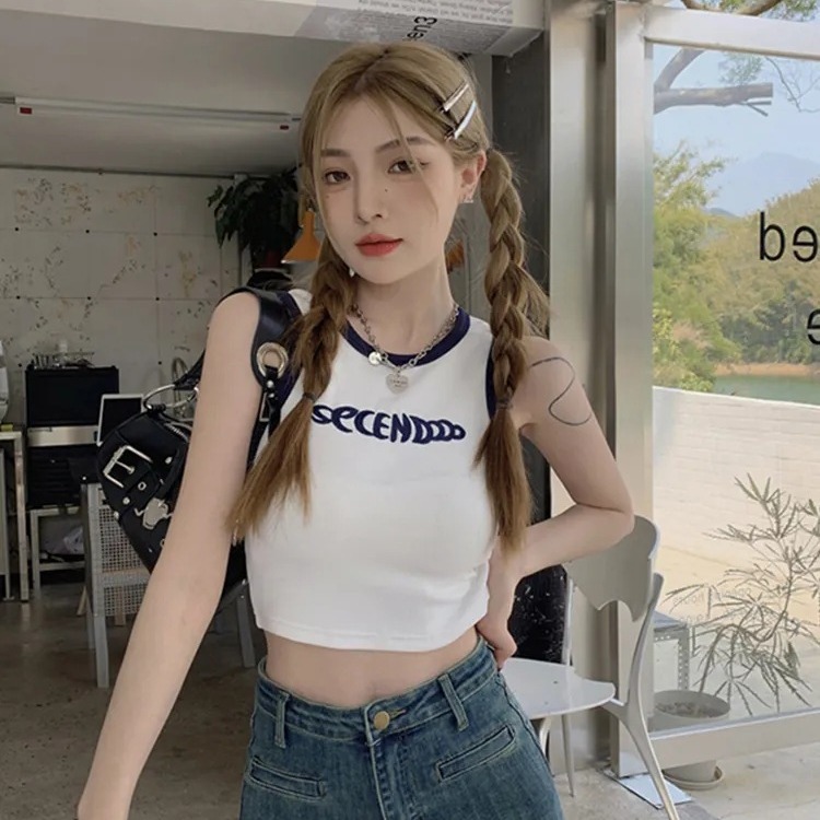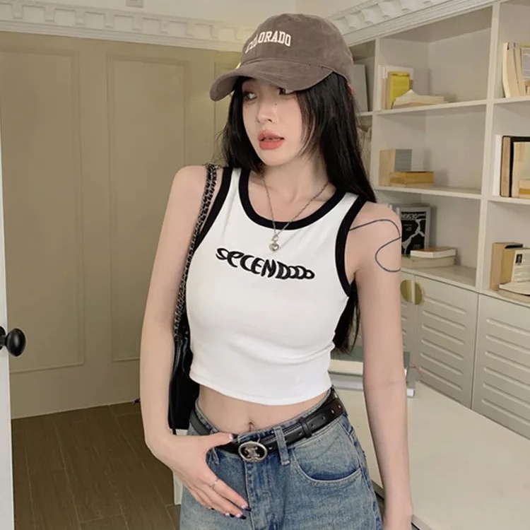 字母刺绣外穿短款背心女夏季新款纯欲风辣妹内搭修身撞色上衣