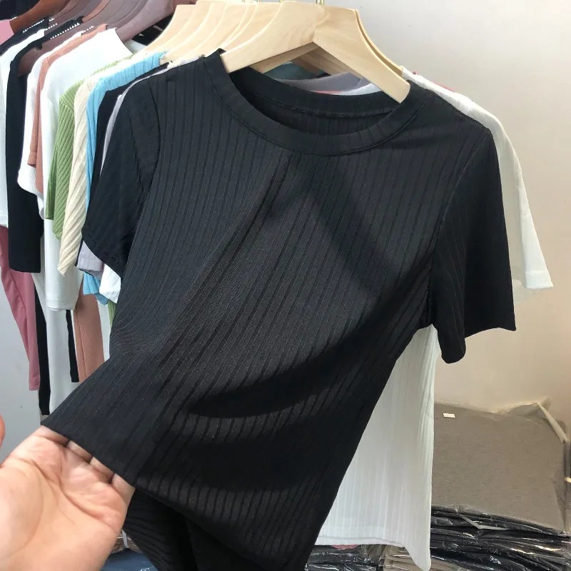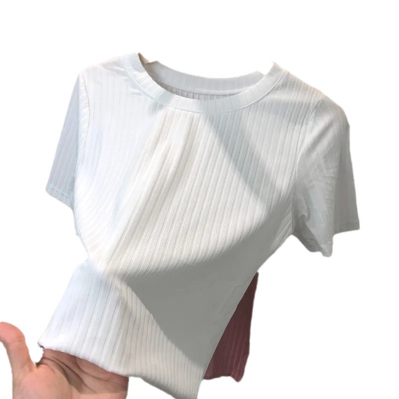 欧货坑条薄款白色短袖T恤女夏季新款内搭宽松圆领打底衫上衣