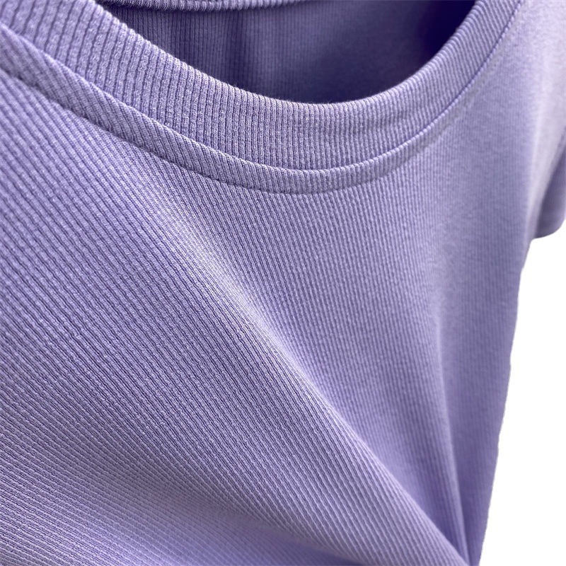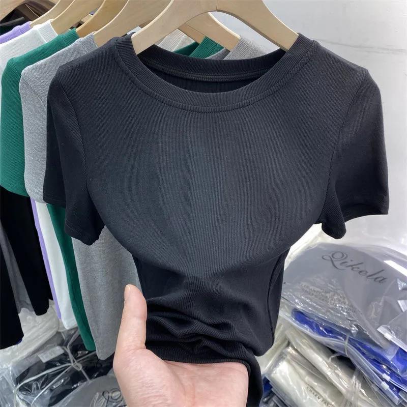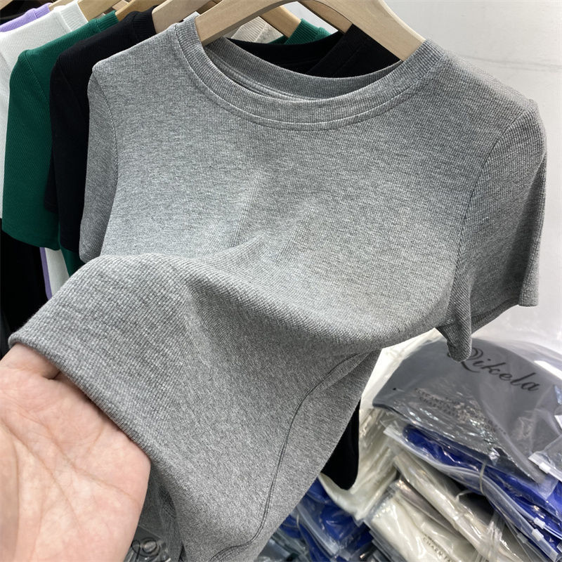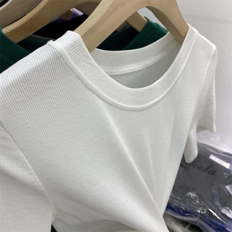 高档冰丝新款面膜短袖t恤女纯色百搭紧身螺纹打底衫体恤小衫上衣