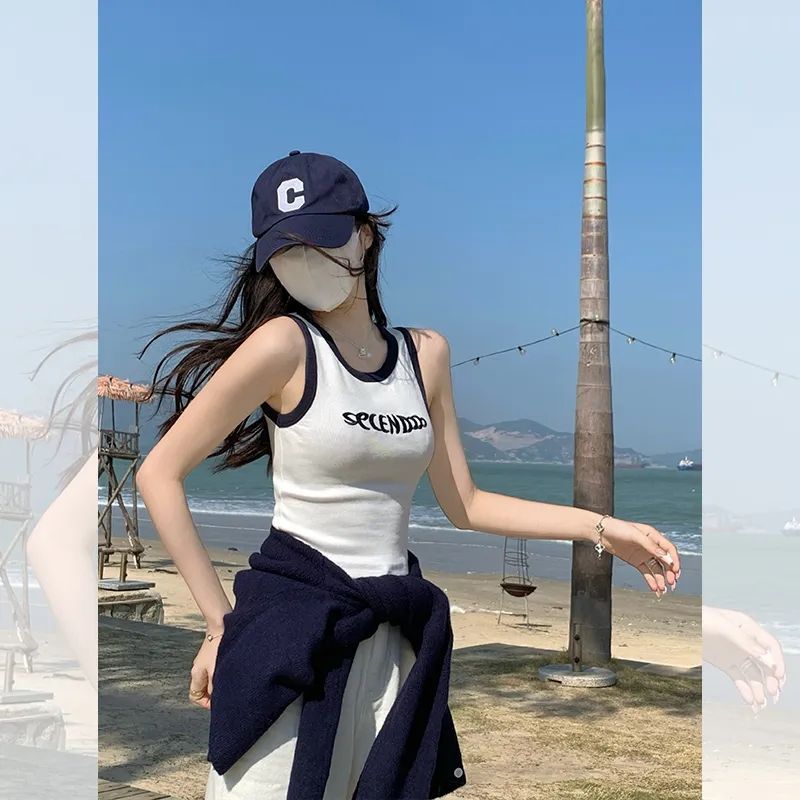 字母刺绣外穿短款背心女夏季新款纯欲风辣妹内搭修身撞色上衣