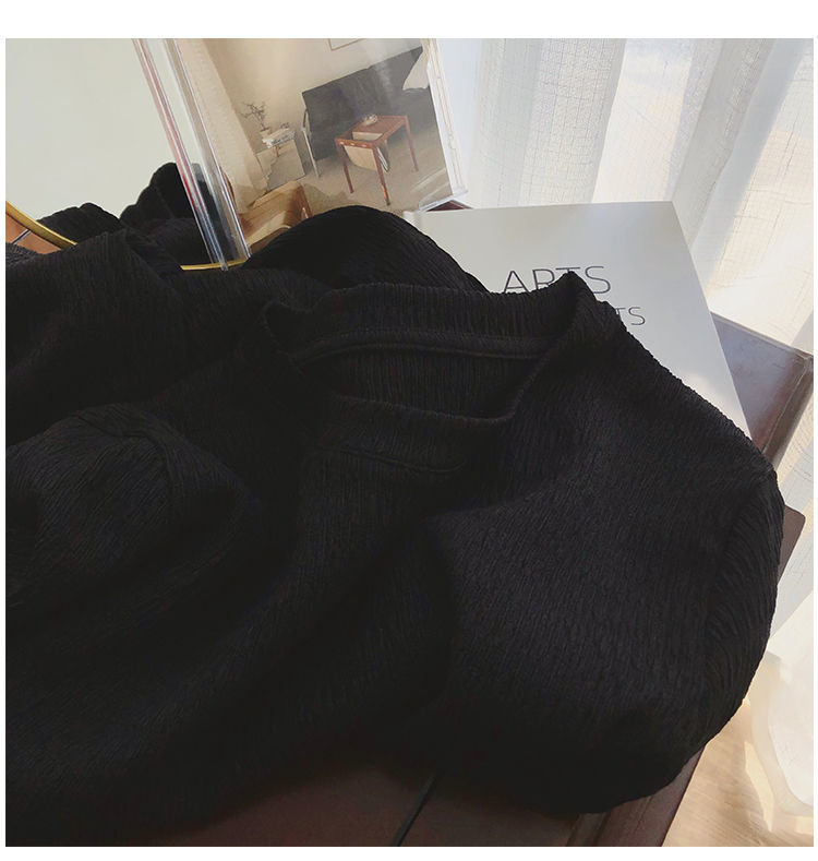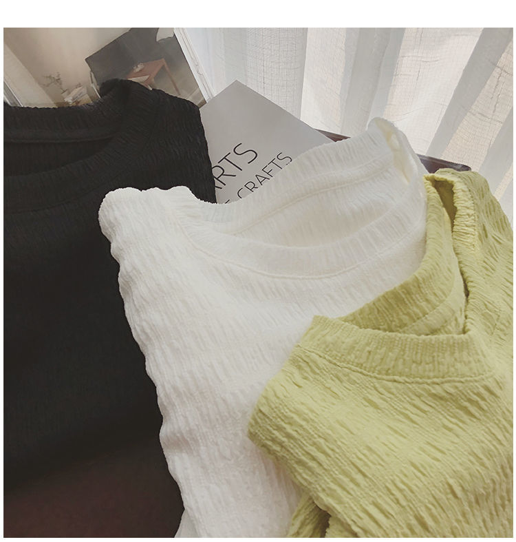 洋气圆领纯色褶皱雪纺短袖T恤女夏季新款韩版时尚百搭显瘦上衣ins