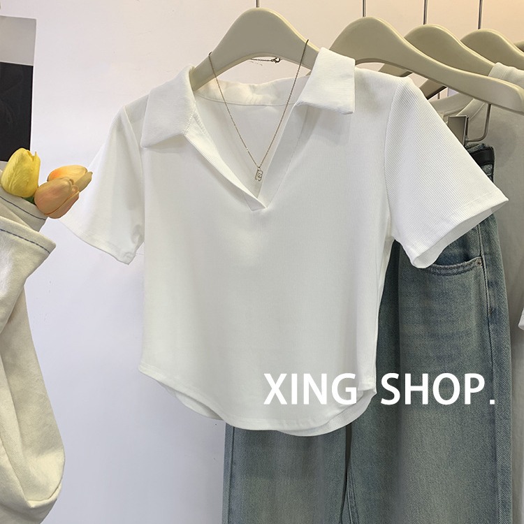 莫代尔棉垂坠感潮流短袖T恤女夏季宽松韩版打底衫百搭休闲v领上衣