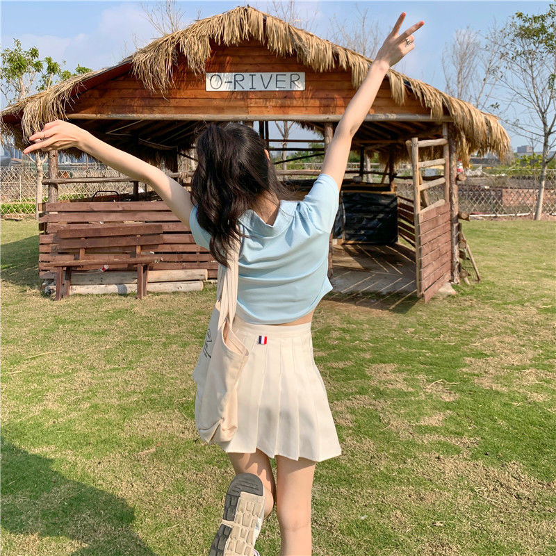 美式水洗做旧正肩短袖t恤女夏季设计感小众港味复古chic上衣情侣